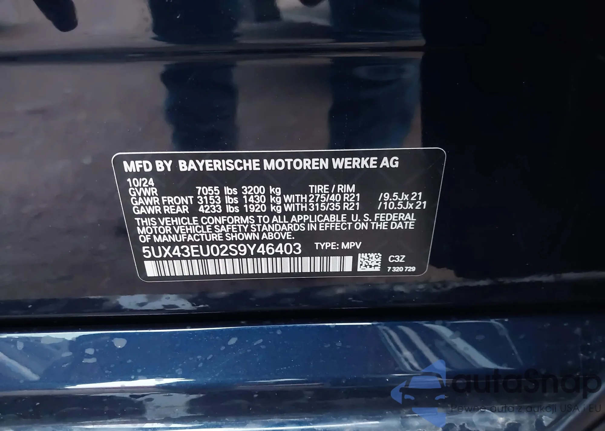 LOT: 41493761 VIN: 5UX43EU02S9Y46403