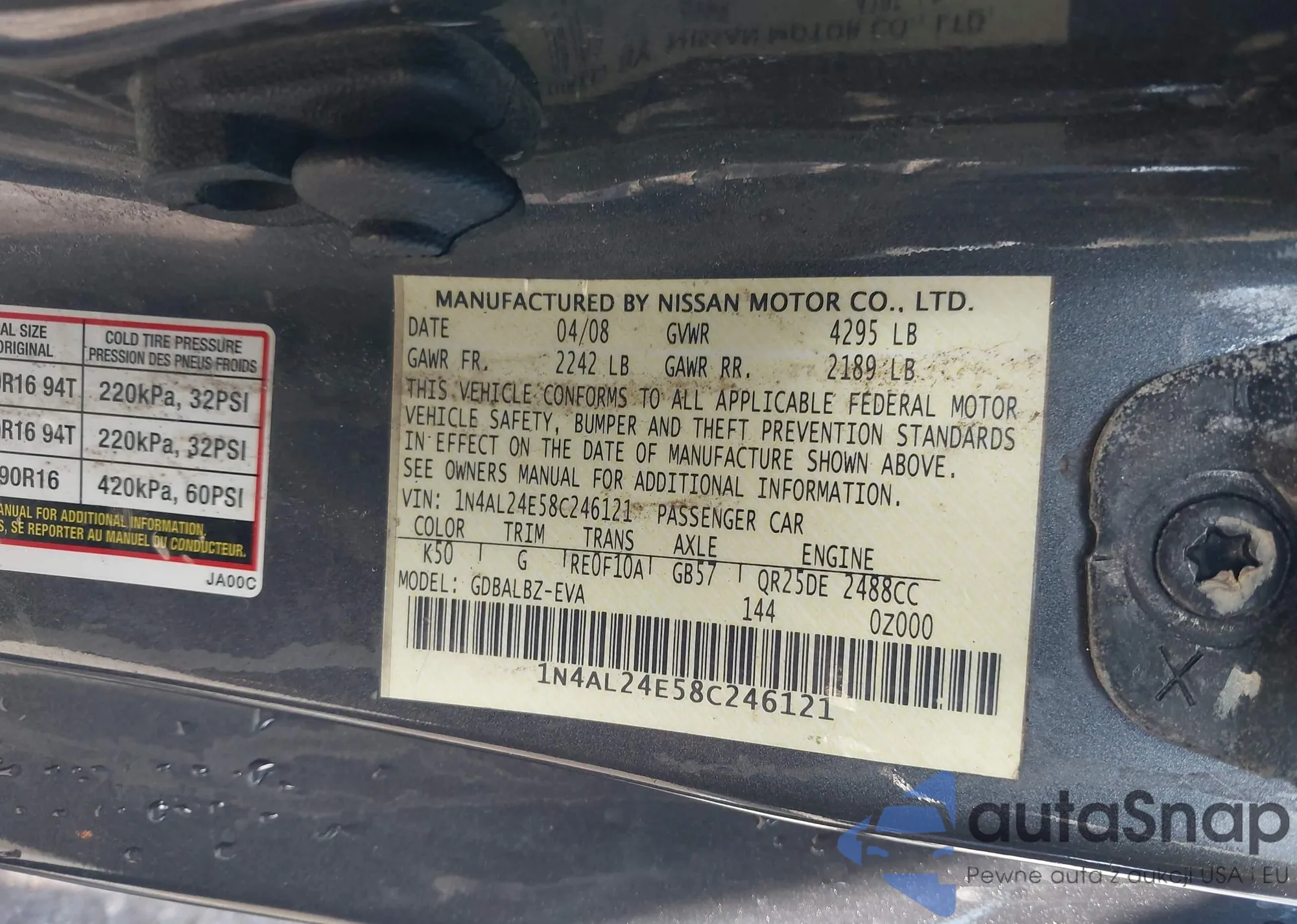 • VIN 1N4AL24E58C246121