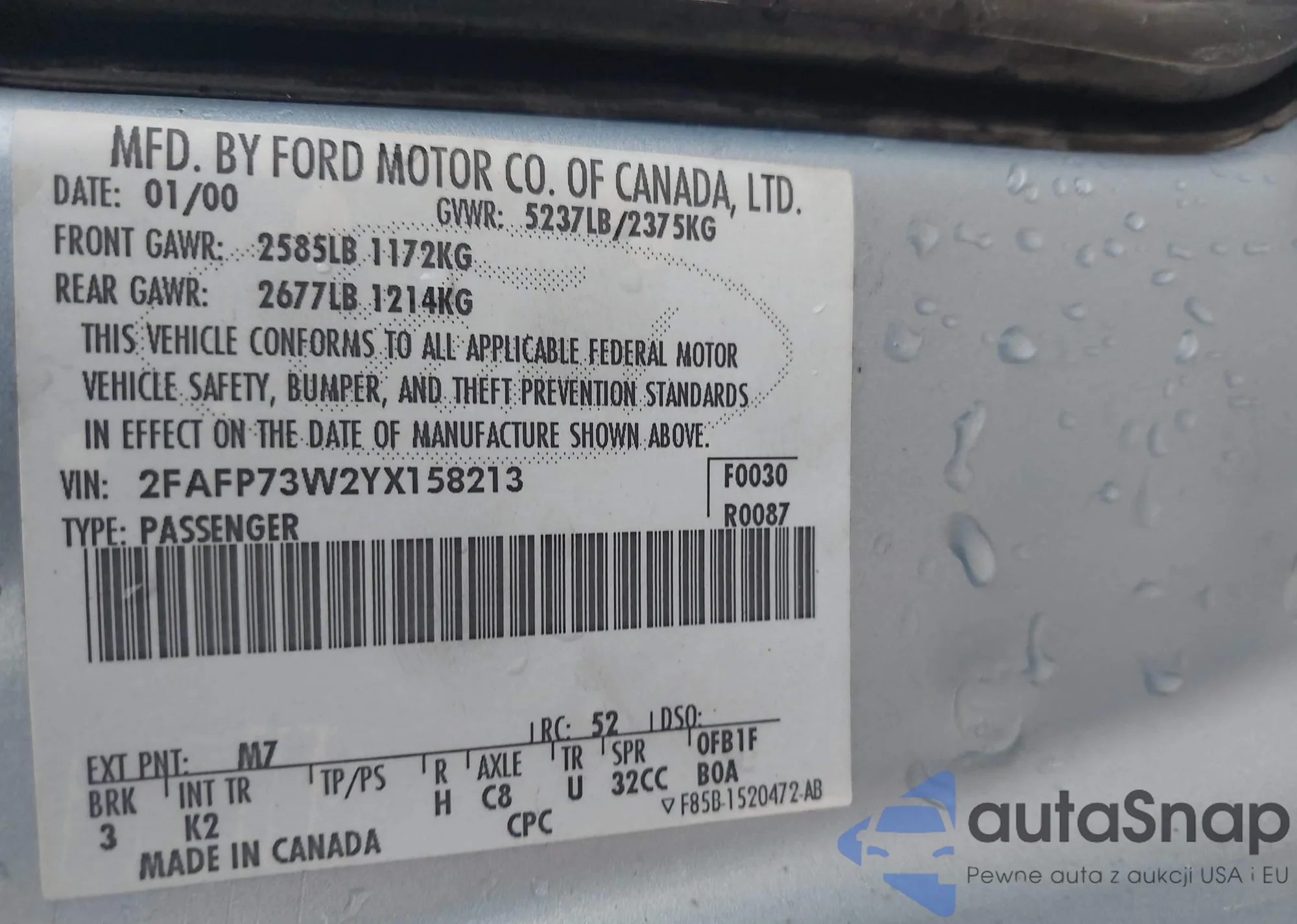 LOT: 41504027 VIN: 2FAFP74W36X132313