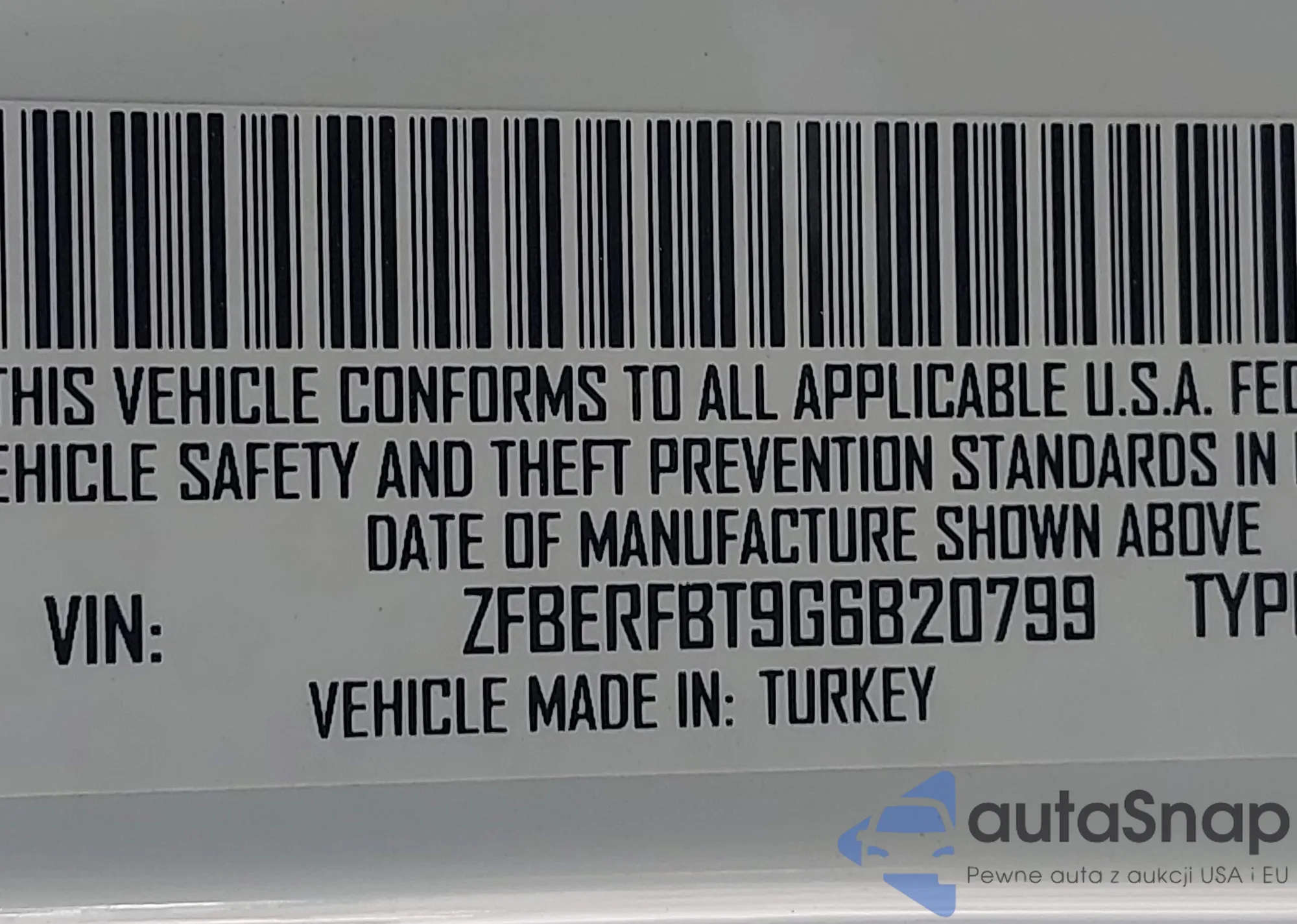 • VIN ZFBERFBT9G6B20799