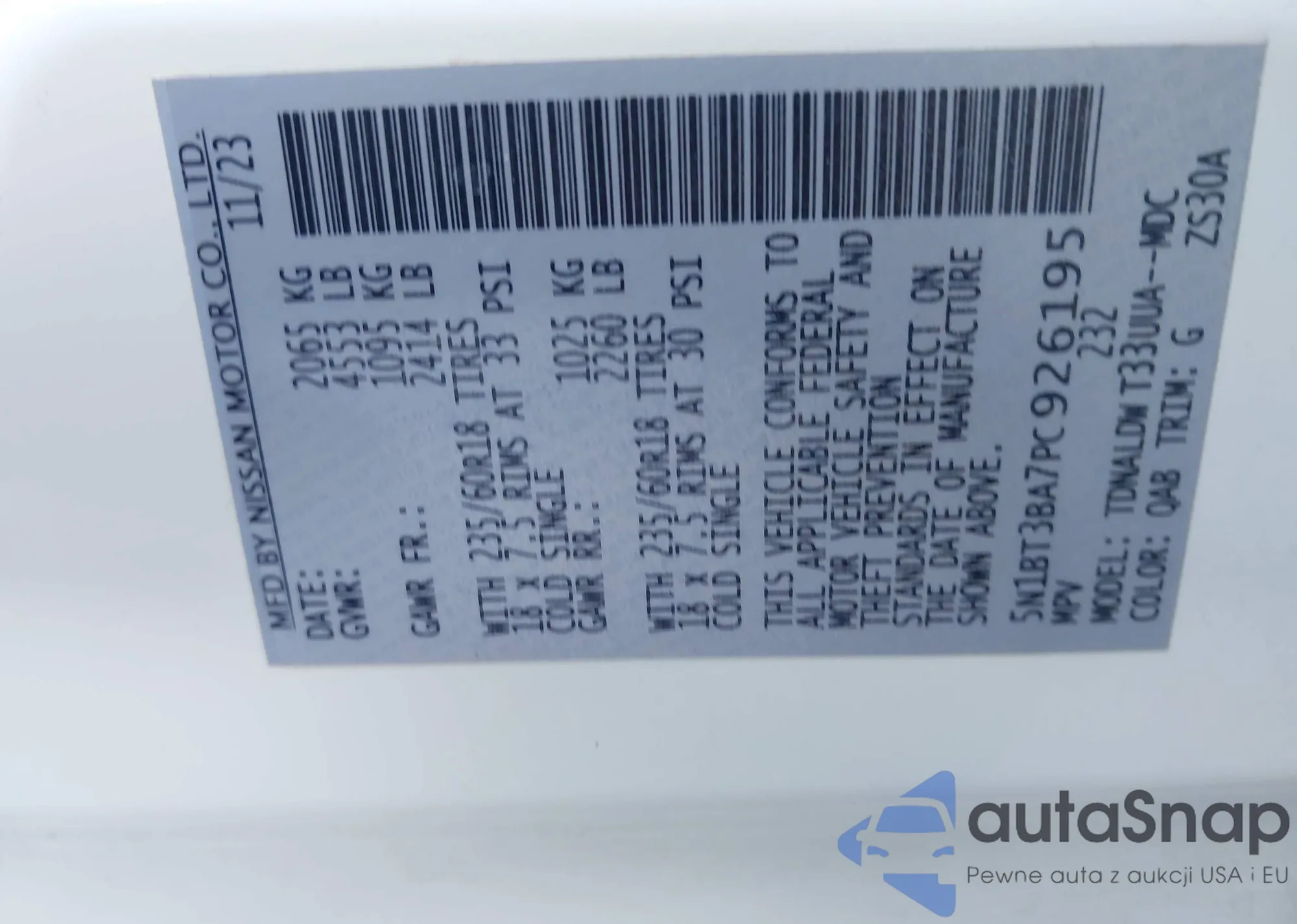LOT: 41392373 VIN: 5N1BT3BA7PC926195