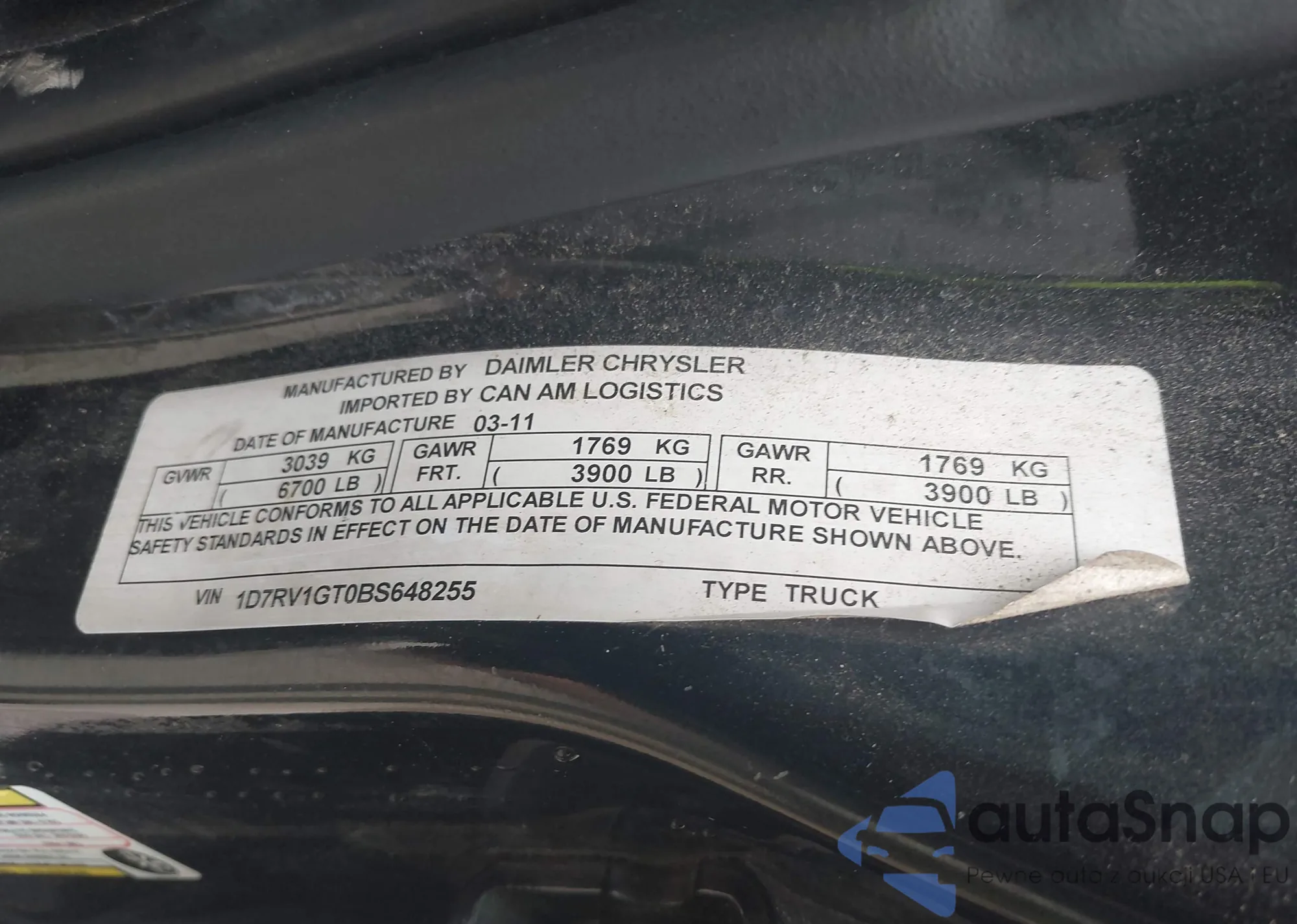 • VIN 1D7RV1GT0BS648255