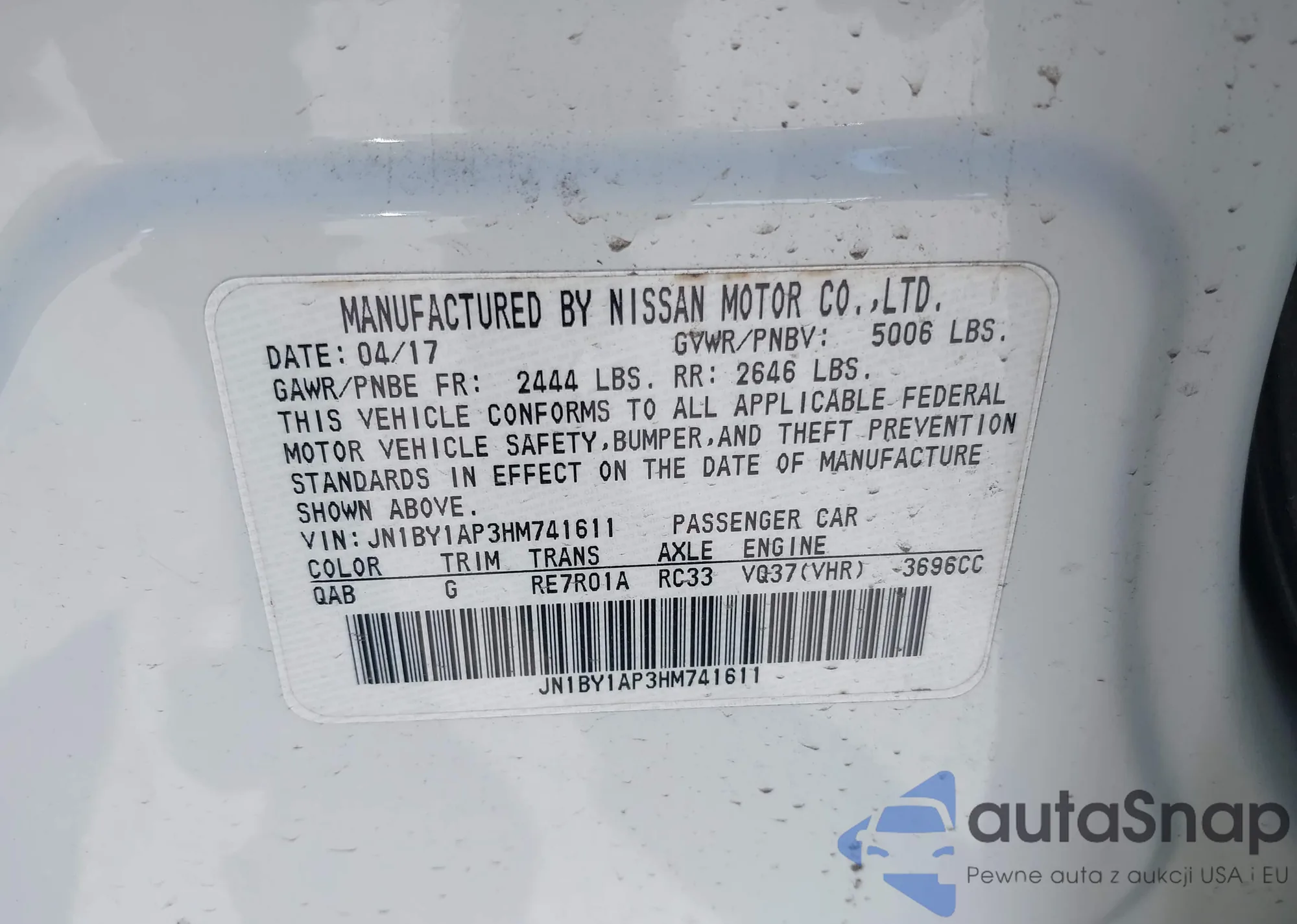 LOT: 41465116 VIN: JN1BY1AP3HM741611