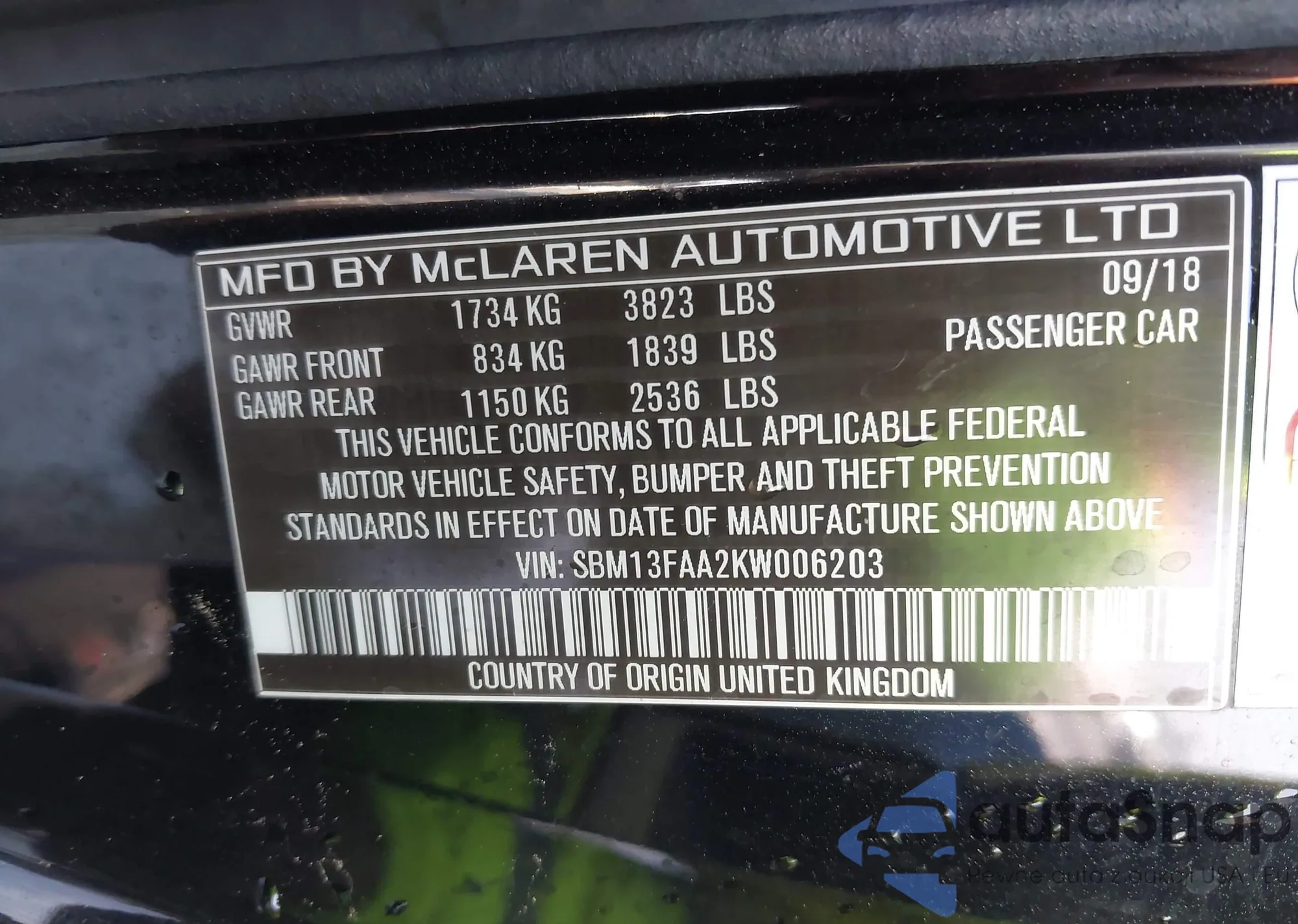2019 Mclaren 570S из США, поврежденный, VIN SBM13FAA2KW006203