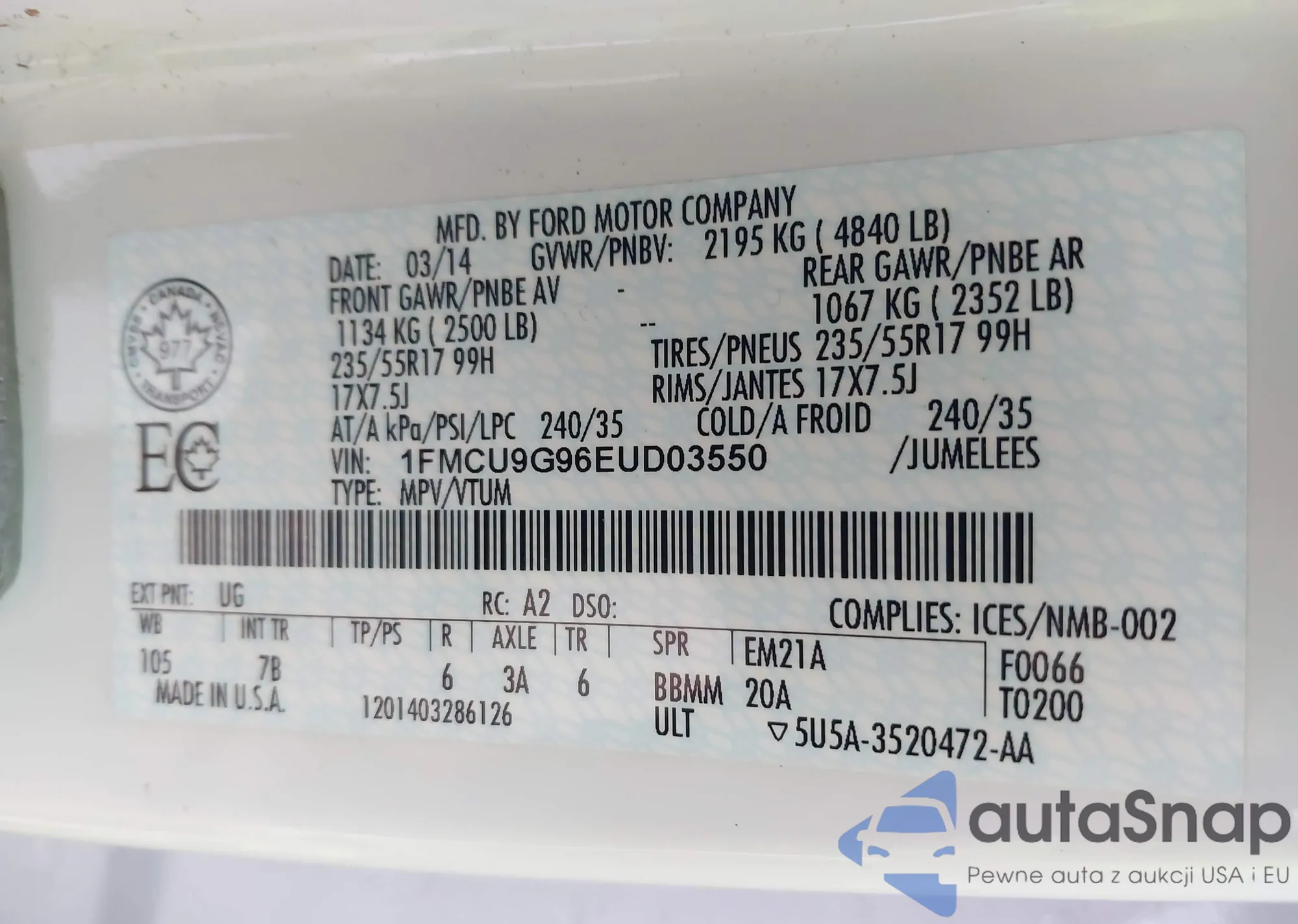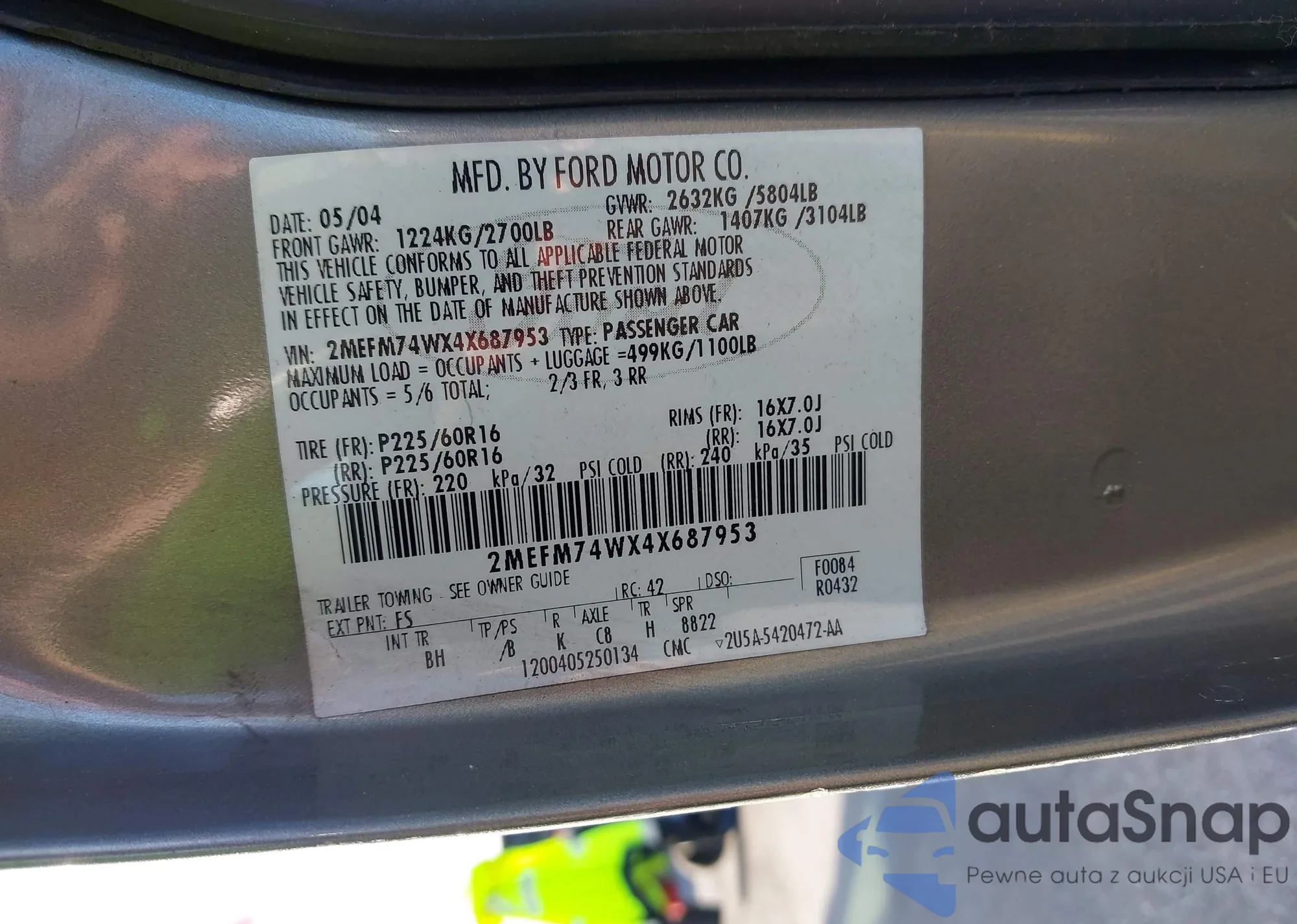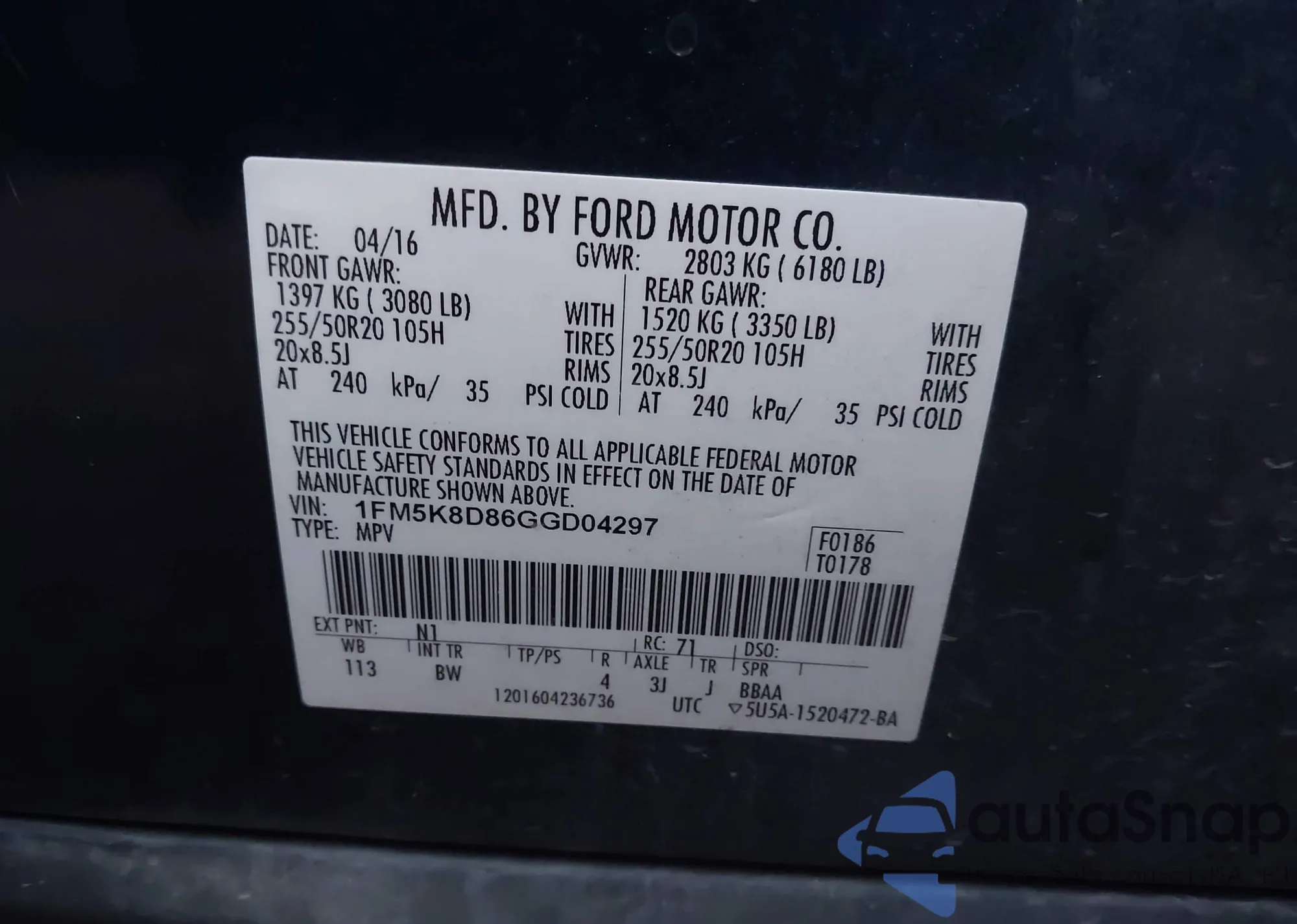 • VIN 1FM5K8D86GGD04297
