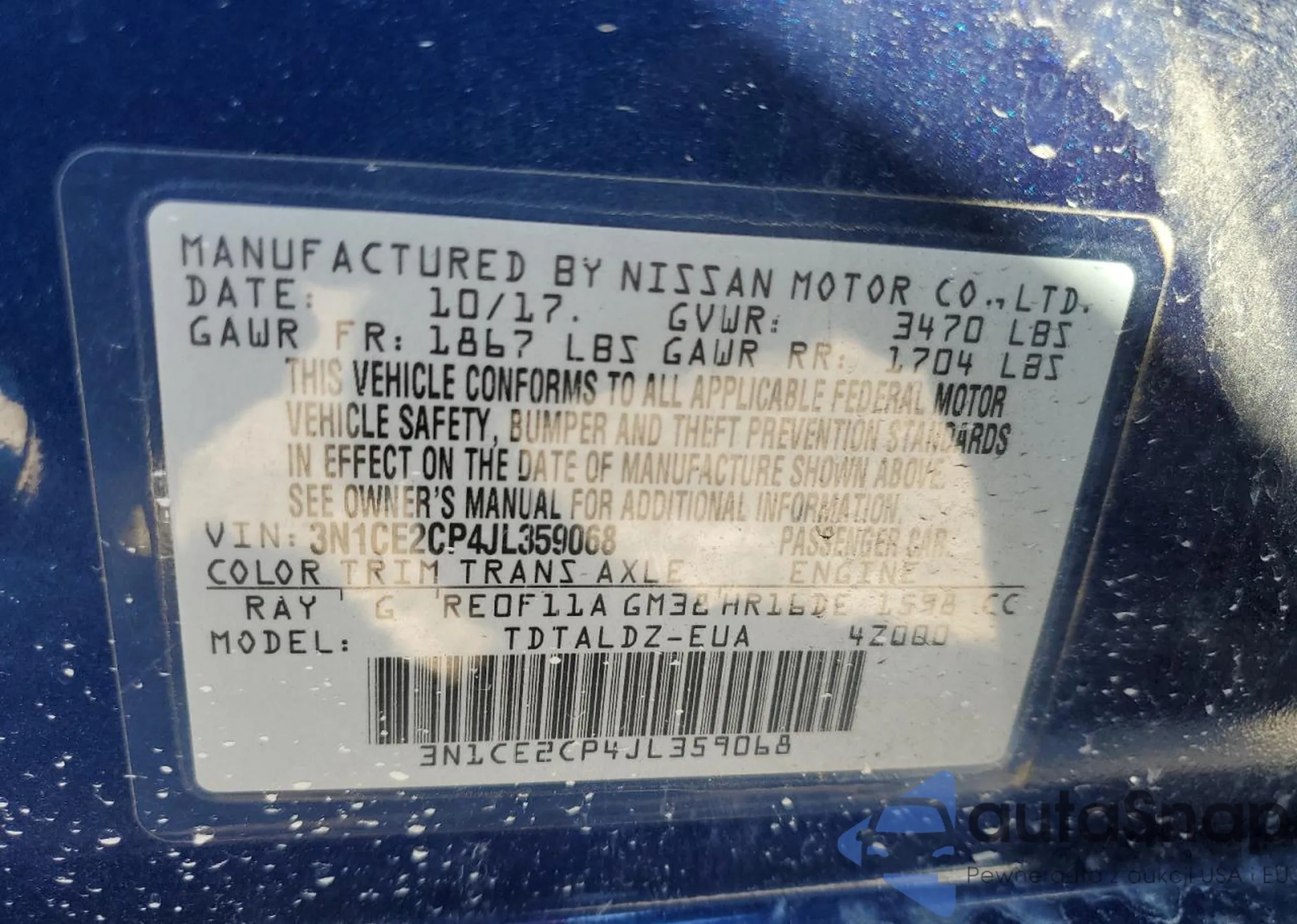 • VIN 3N1CE2CP4JL359068