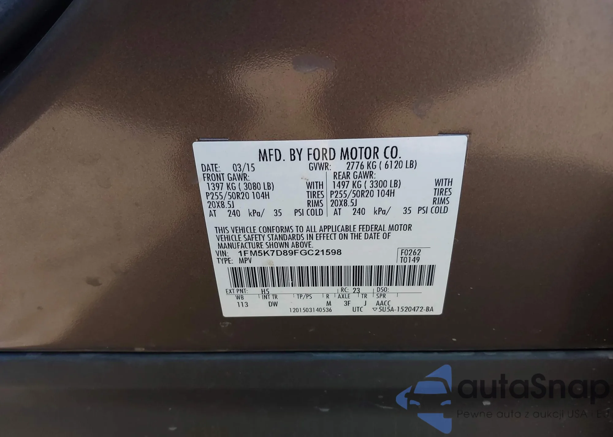LOT: 41307871 VIN: 1FM5K7D89FGC21598
