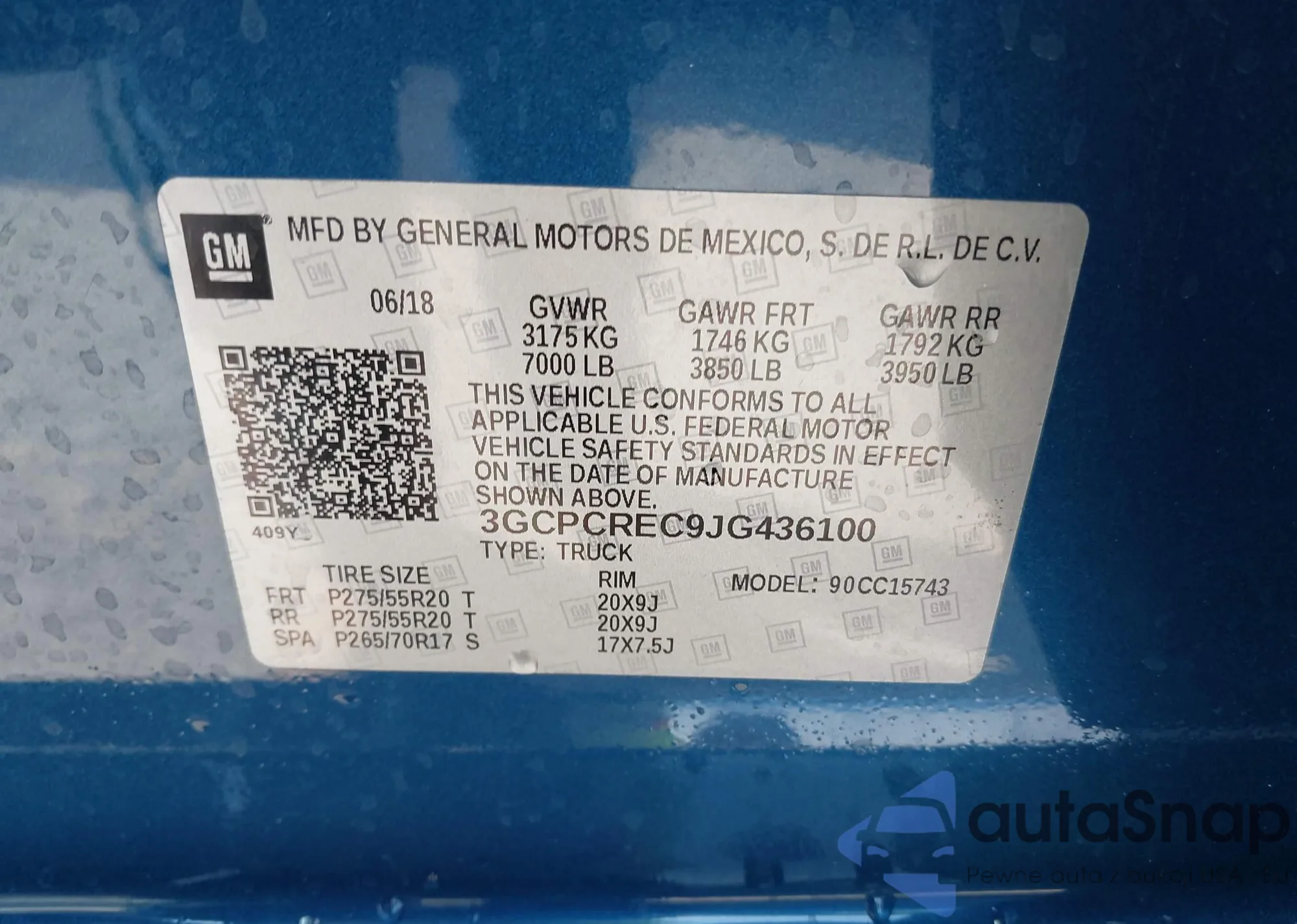 • VIN 3GCPCREC9JG436100