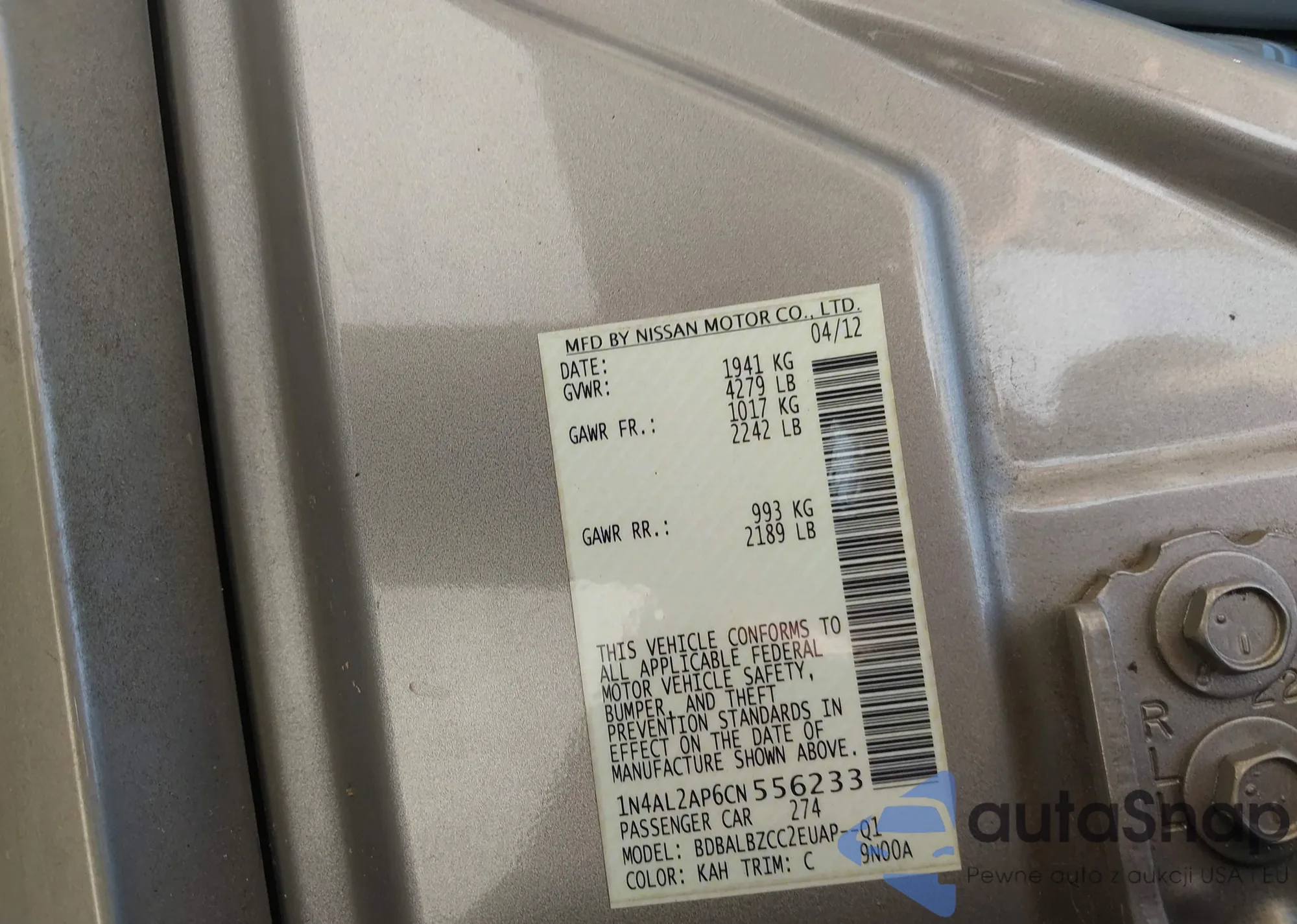 LOT: 40268439 VIN: 1N4AL2AP6CN556233