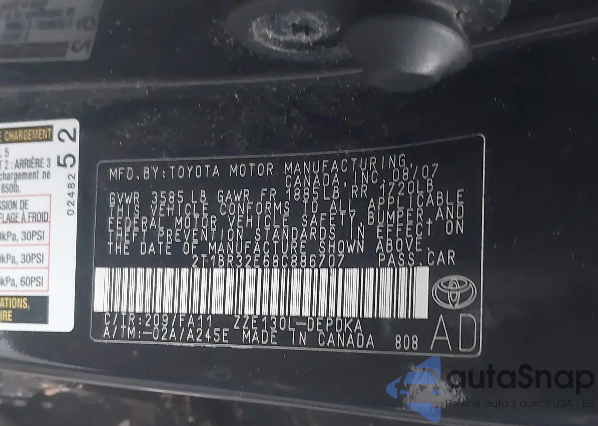 • VIN 2T1BR32E68C886707