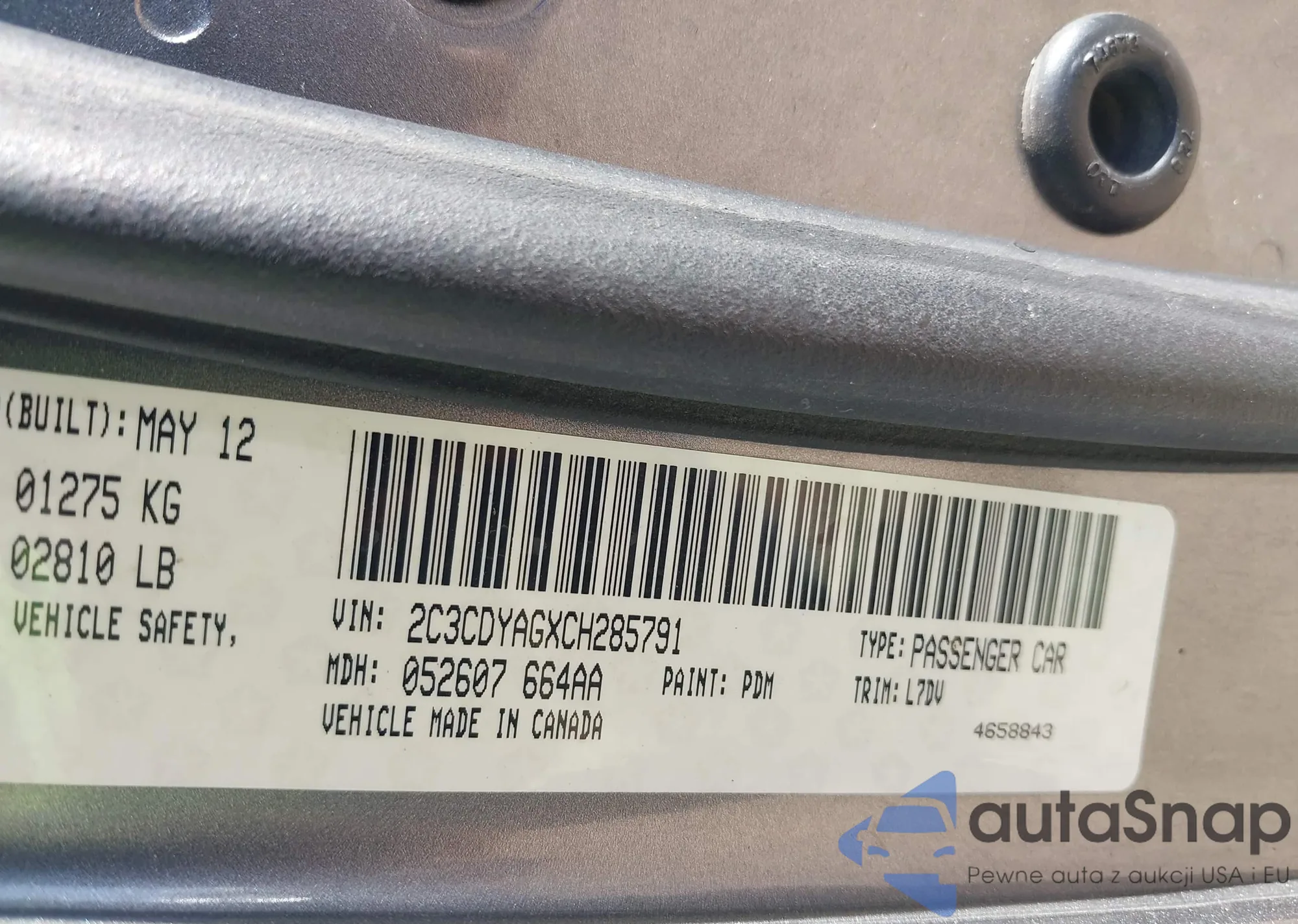 • VIN 2C3CDYAGXCH285791