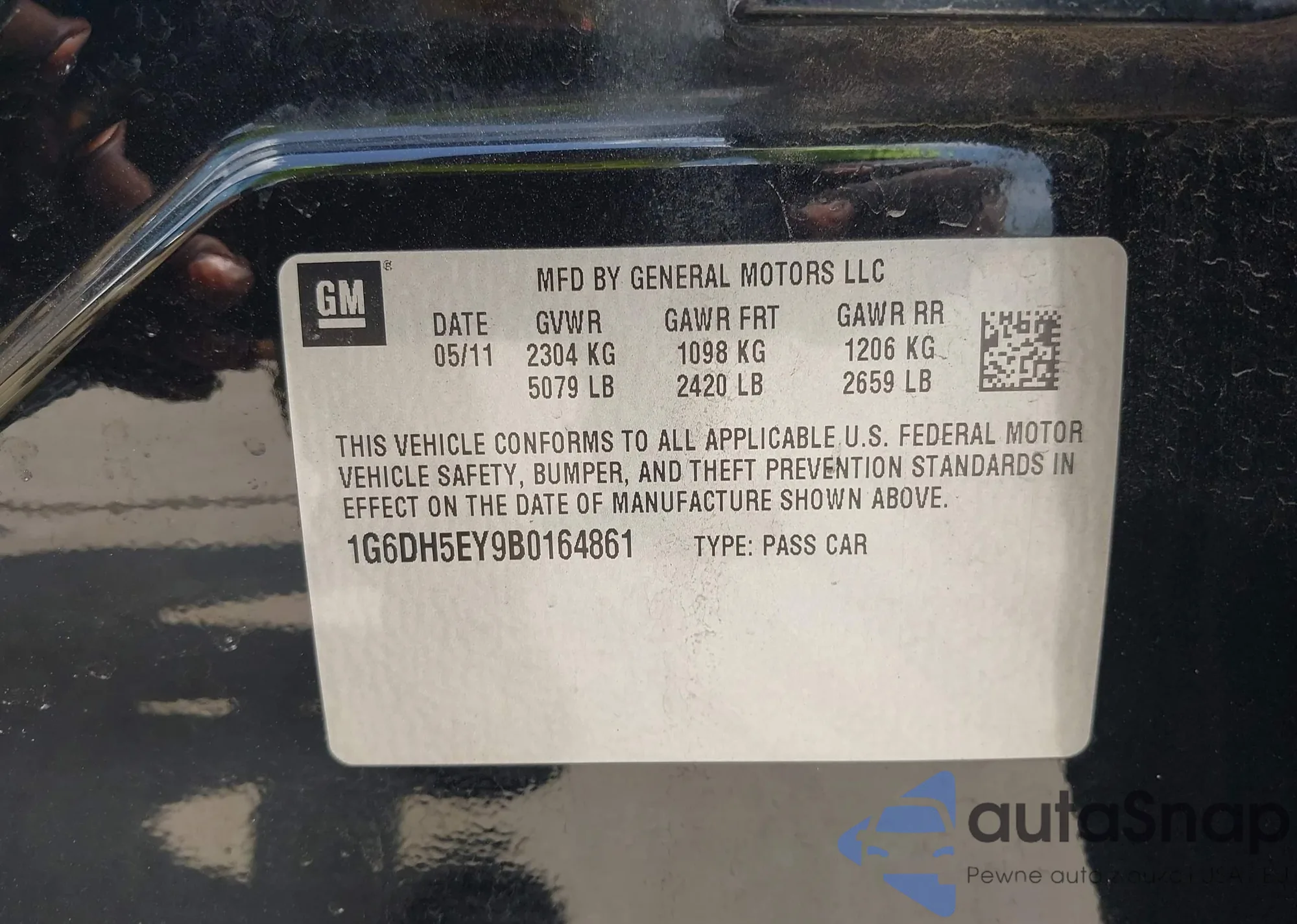 LOT: 39819117 VIN: 1G6DH5EY9B0164861