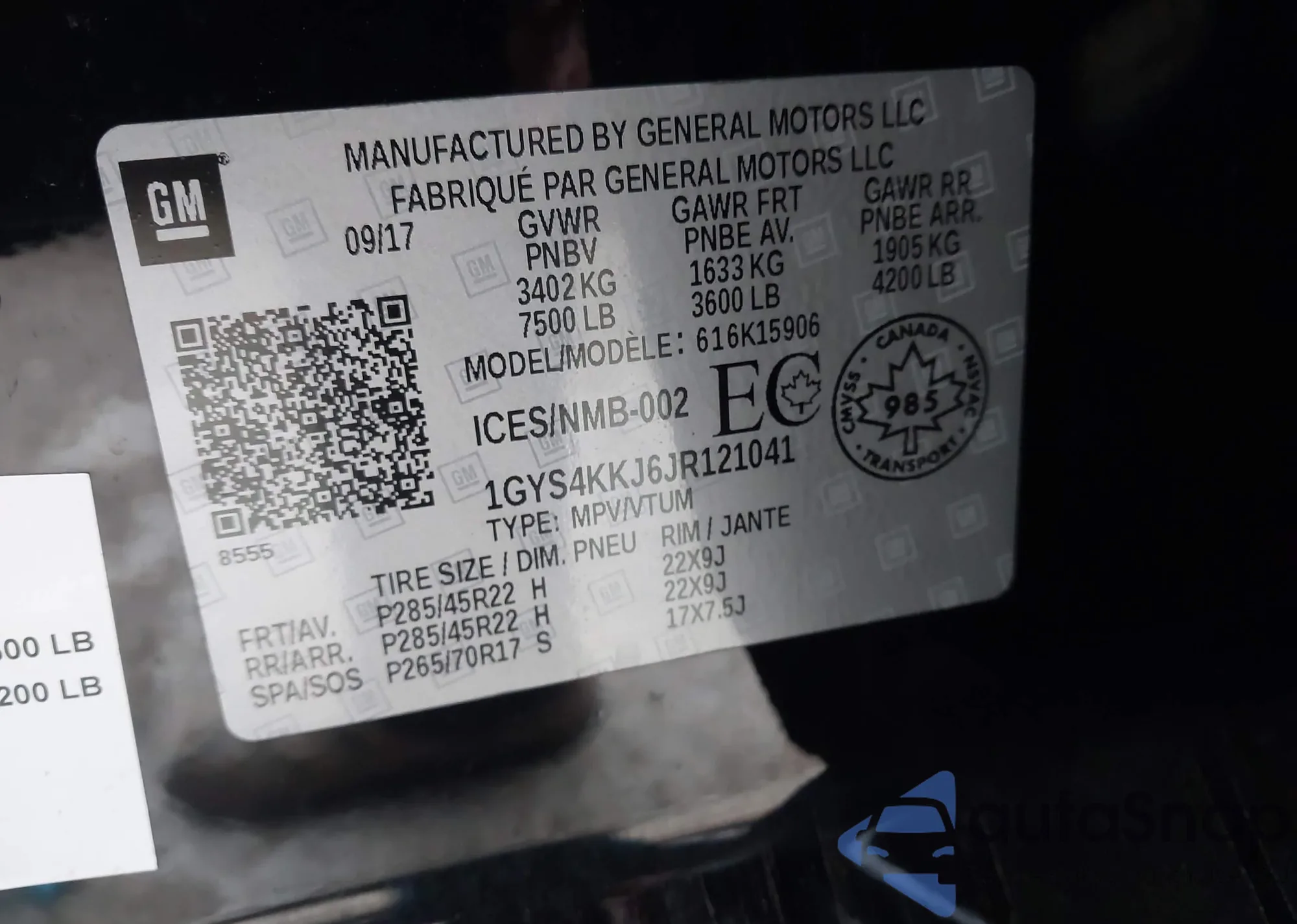 • VIN 1GYS4KKJ6JR121041