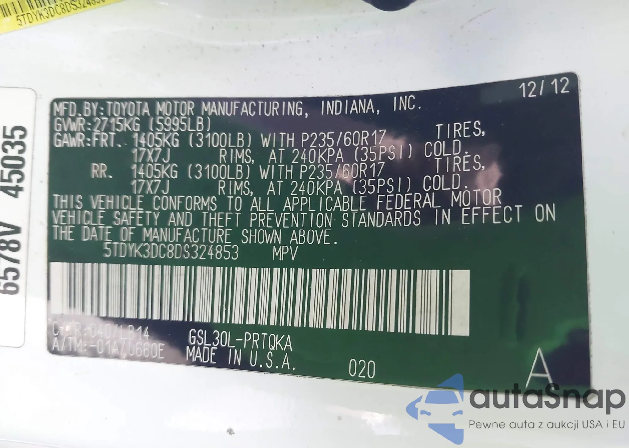 • VIN 5TDYK3DC8DS324853