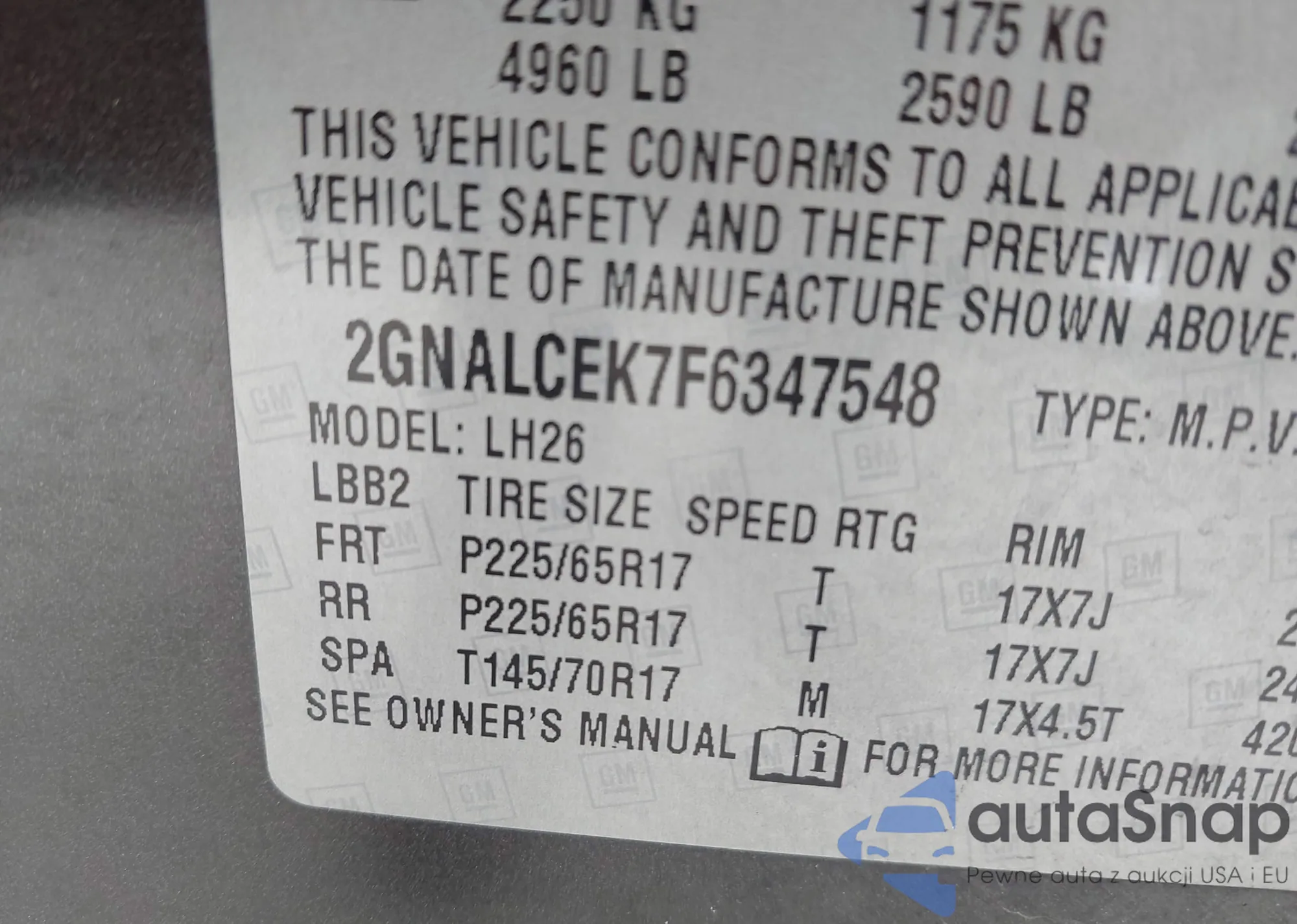 • VIN 2GNALCEK7F6347548