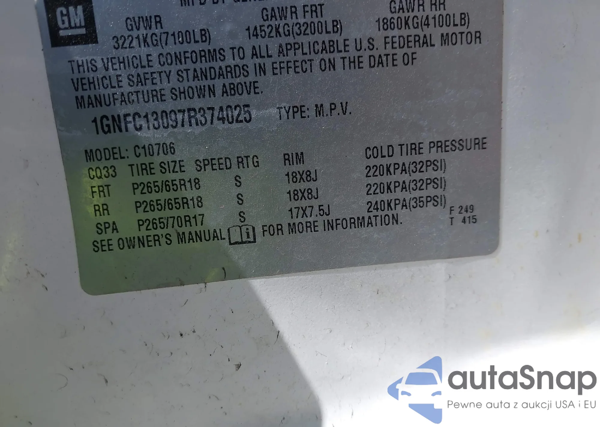 • VIN 1GNFC13097R374025