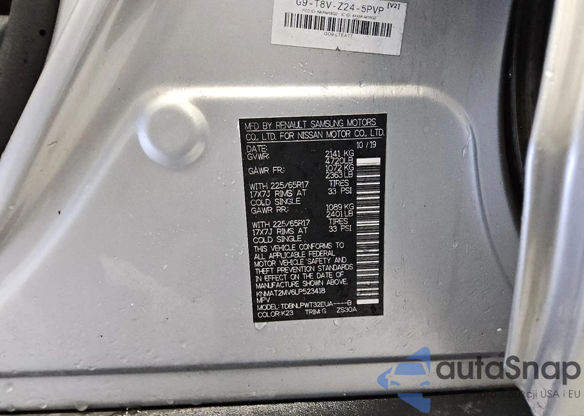 LOT: 46303675 VIN: JN8AT2MV0HW261039
