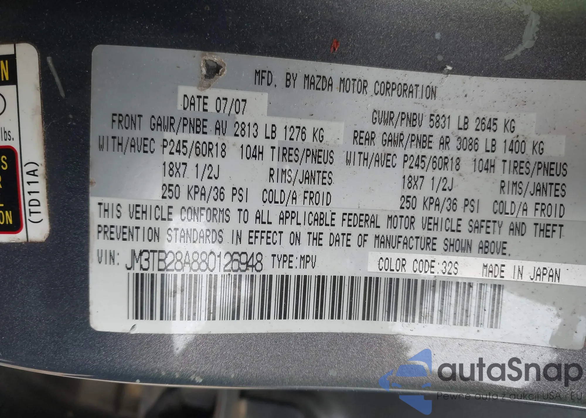 LOT: 40303972 VIN: JN8AZ1MUXCW107544