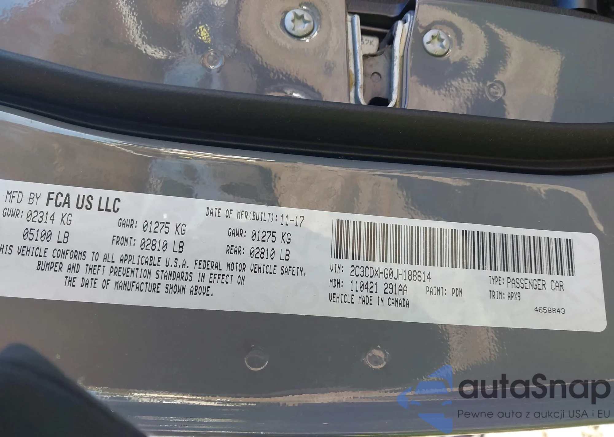 LOT: 41127602 VIN: 2C3CDXHG0JH188614