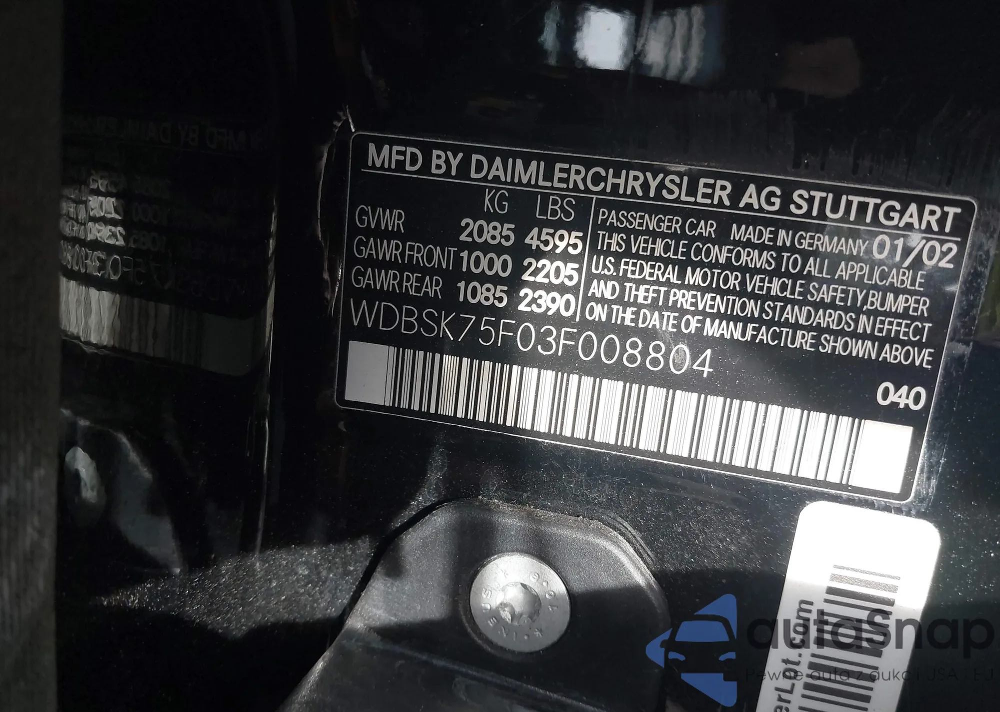 • VIN WDBSK75F03F008804