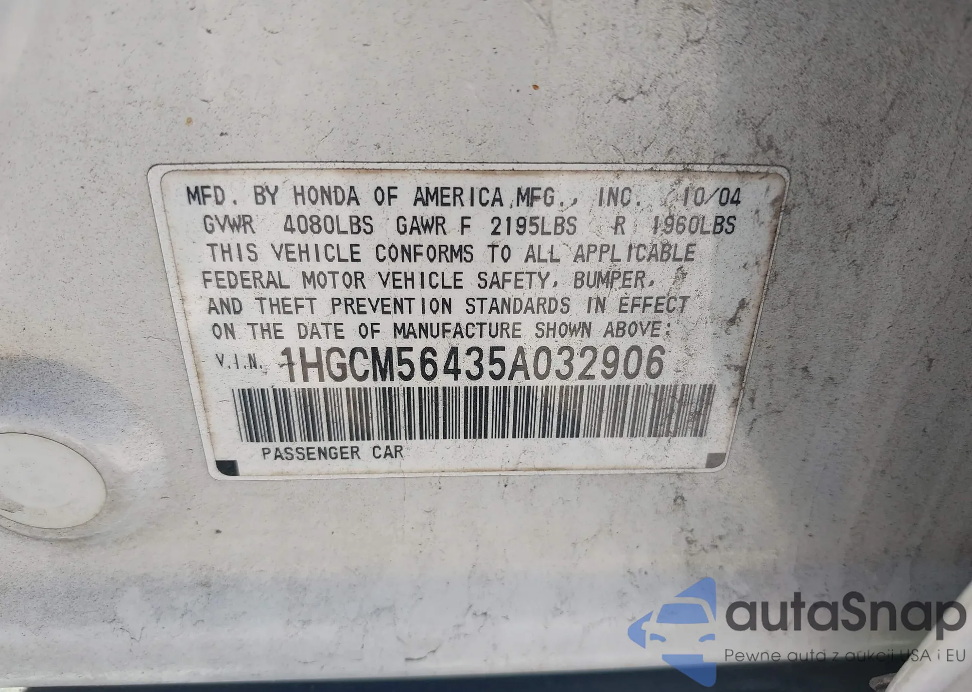 • VIN 2HKRM4H5XDH633830