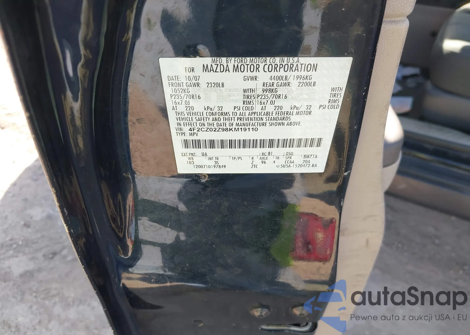 LOT: 41828529 VIN: 4F2CZ02Z98KM19110