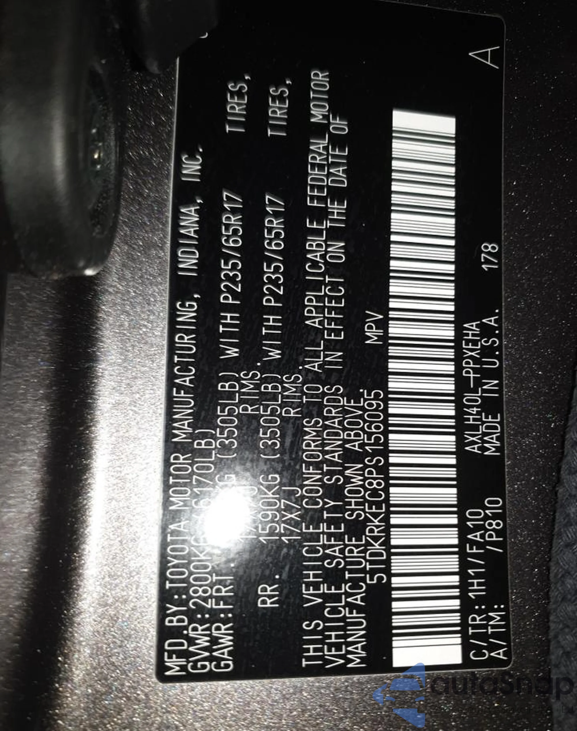 • VIN 5TDKRKEC8PS156095
