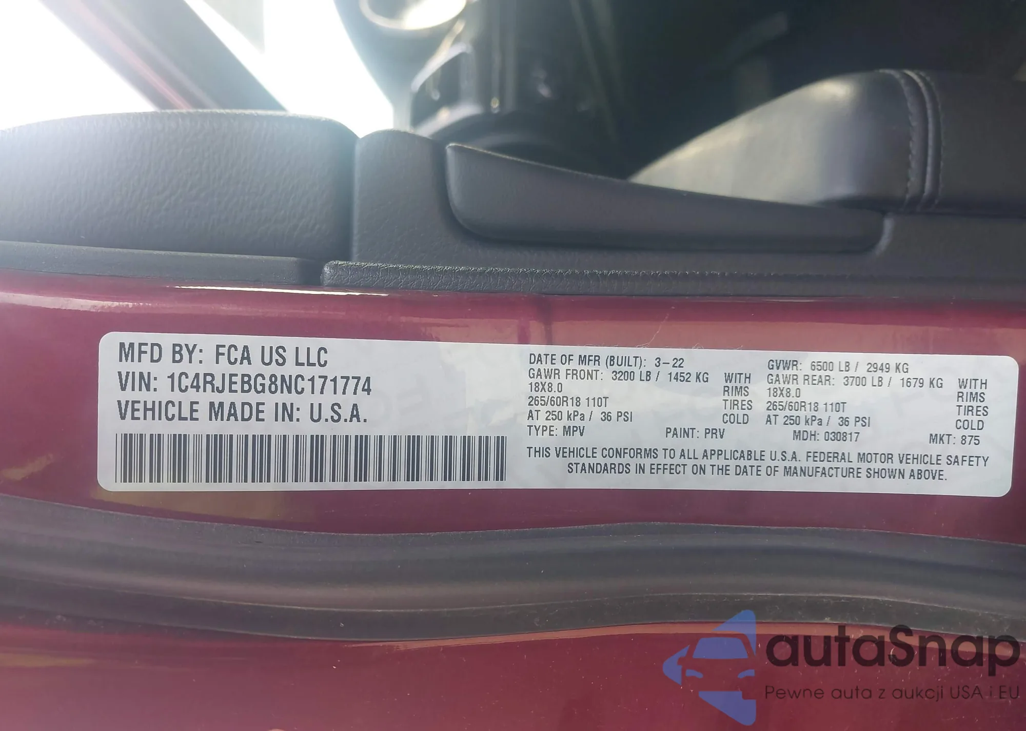 • VIN 1C4RJEBG8NC171774