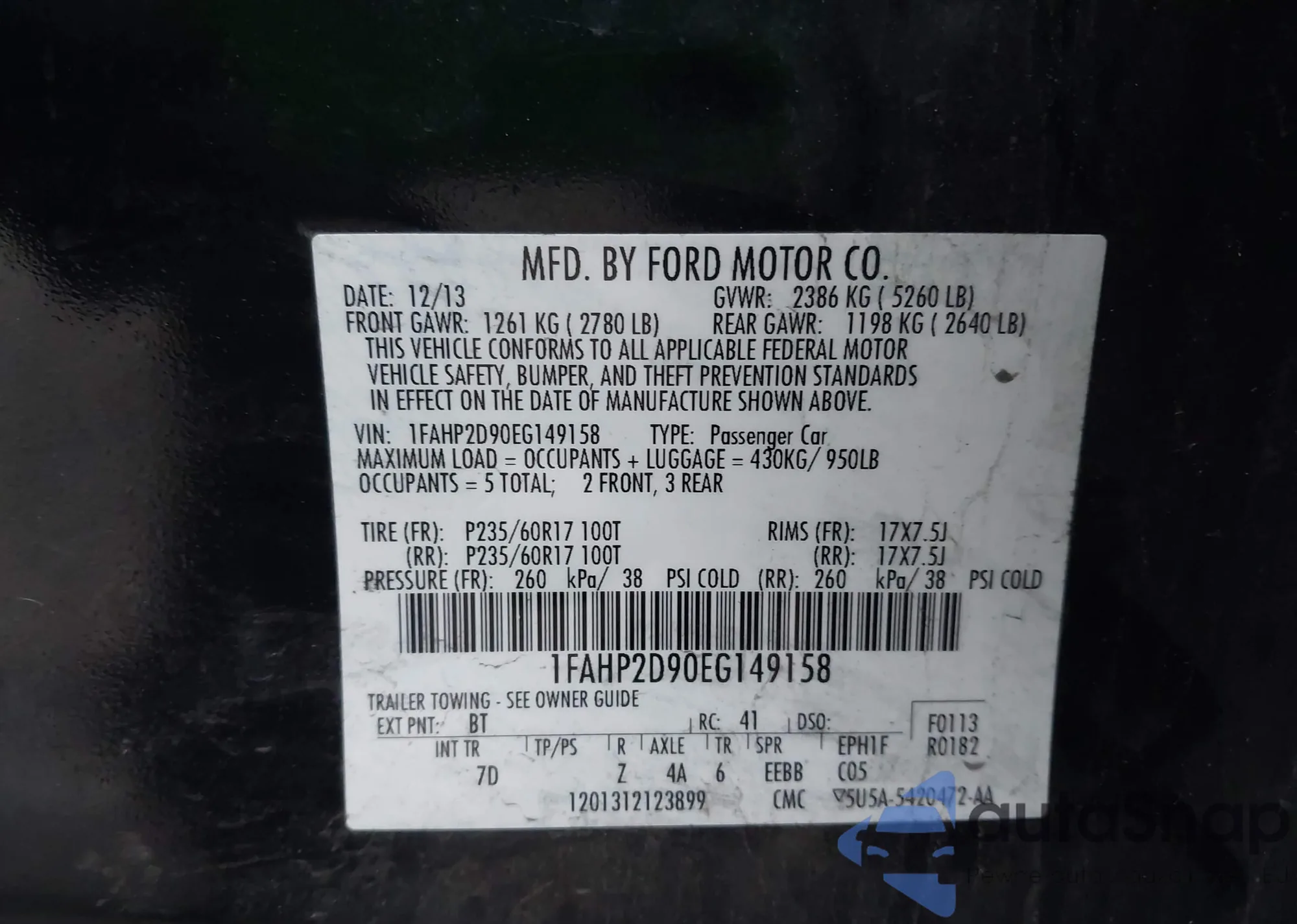 • VIN 1FAHP2D90EG149158