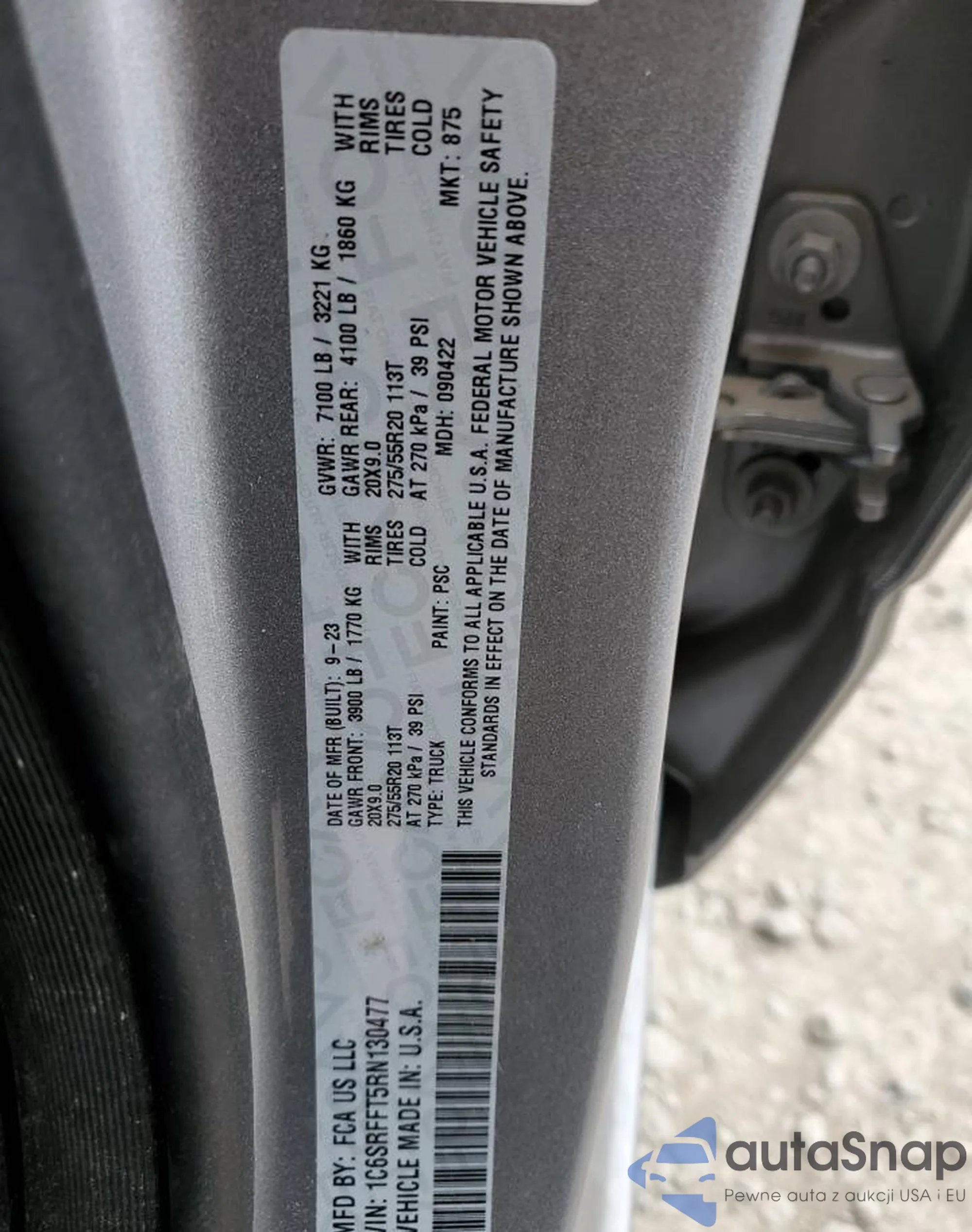 • VIN 1C6SRFFT5RN130477
