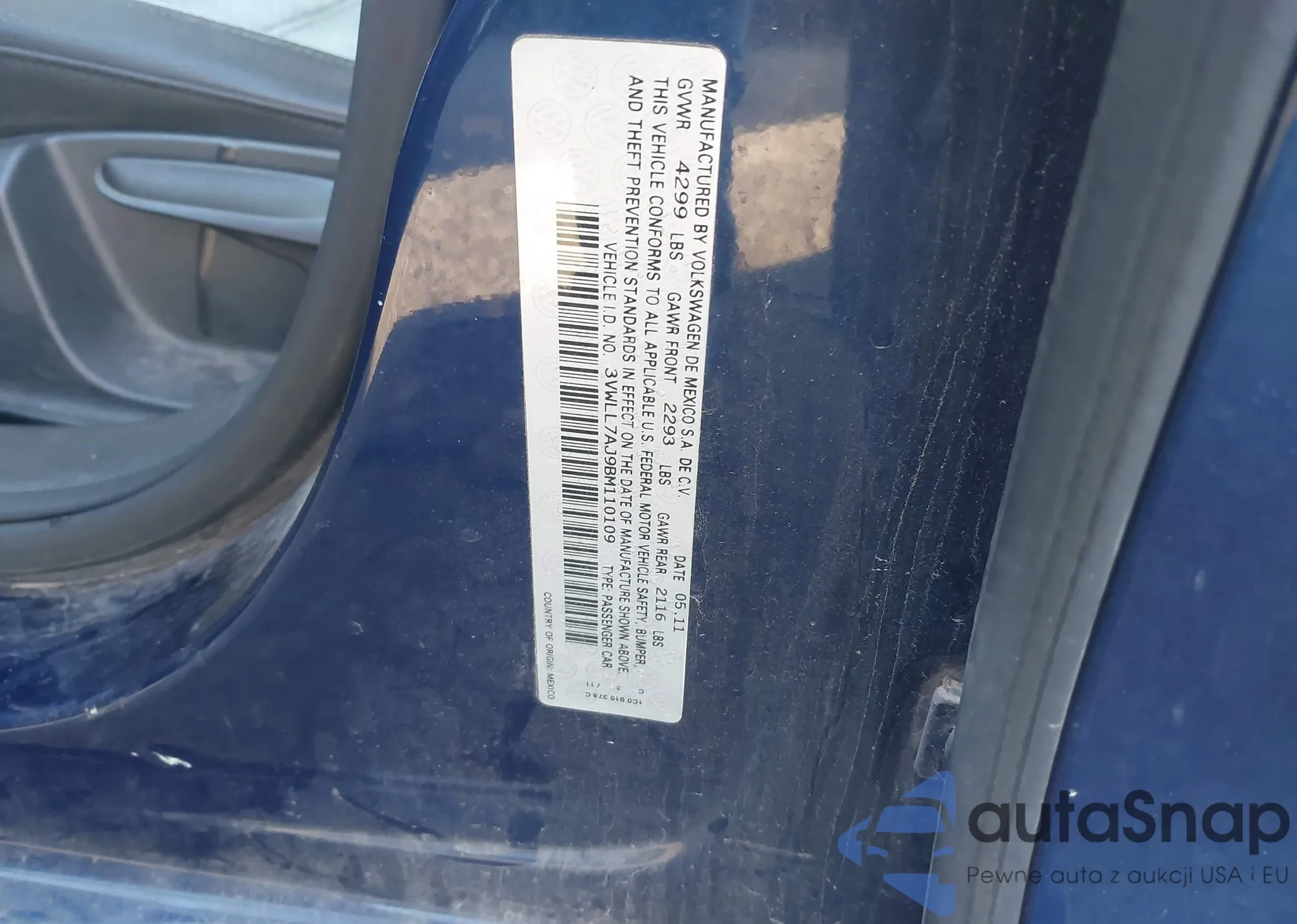 • VIN 3VWLL7AJ9BM110109