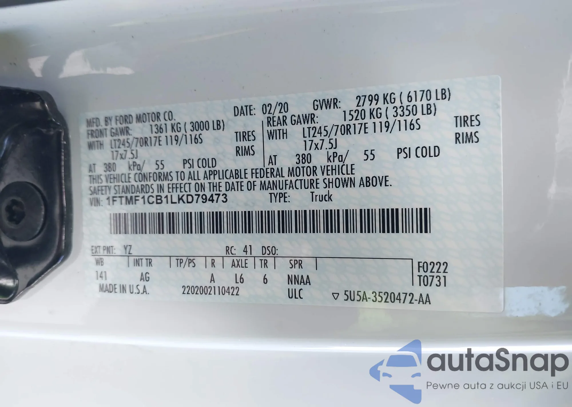 • VIN 1FTMF1CB1LKD79473
