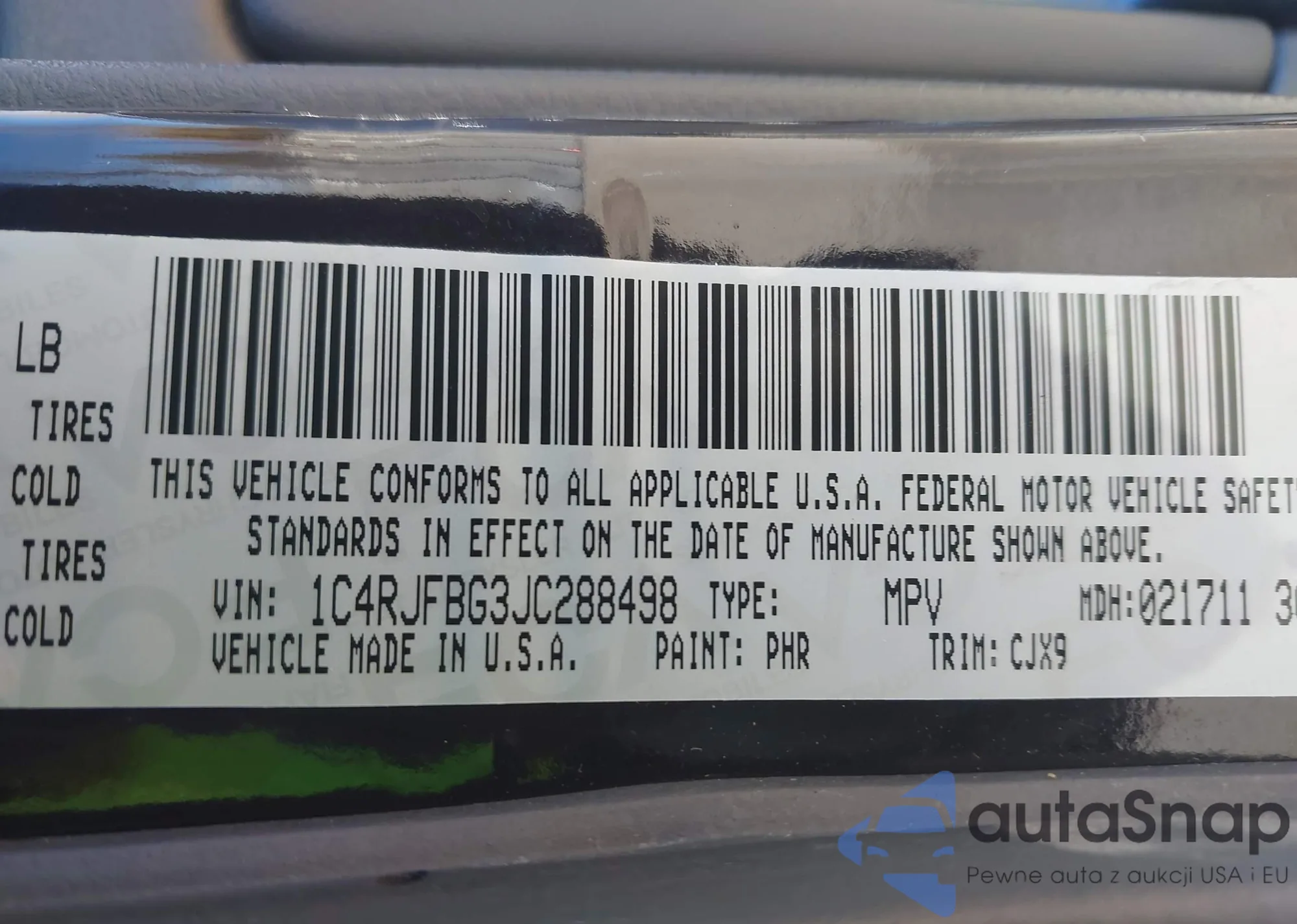 • VIN 1C4RJFBG3JC288498