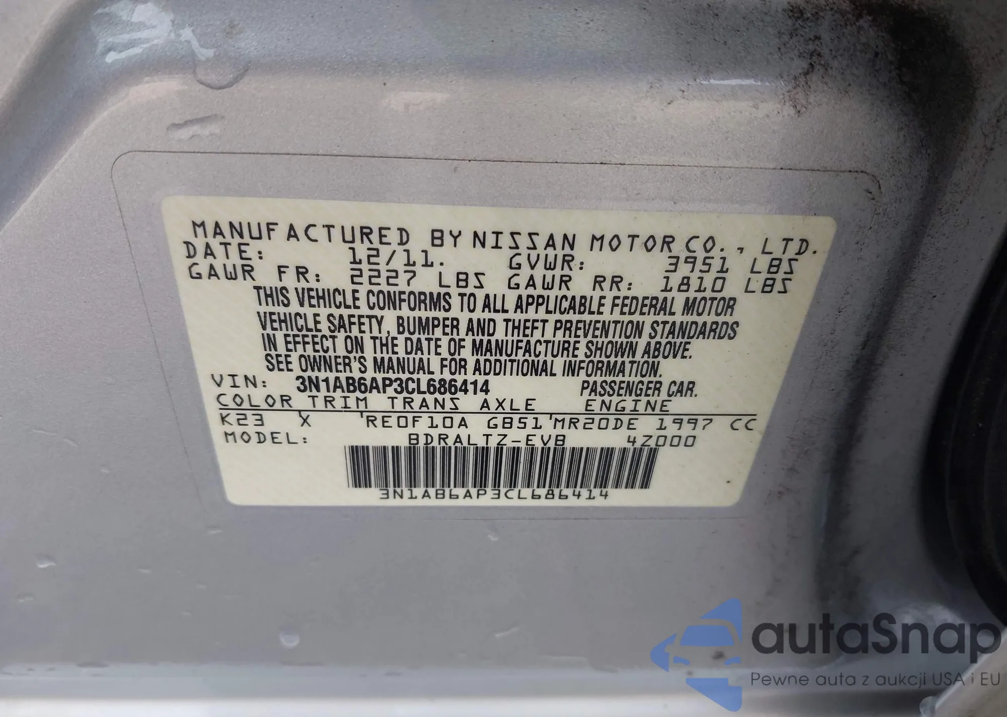• VIN 3N1AB6AP3CL686414