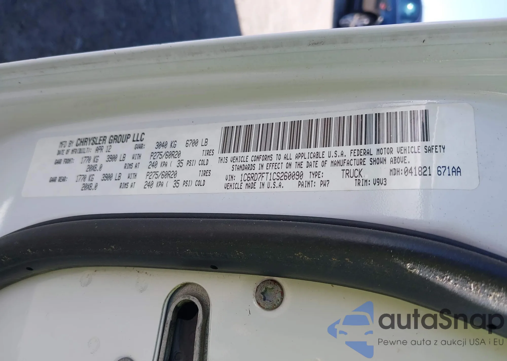 • VIN 1C6RD7FT1CS260090