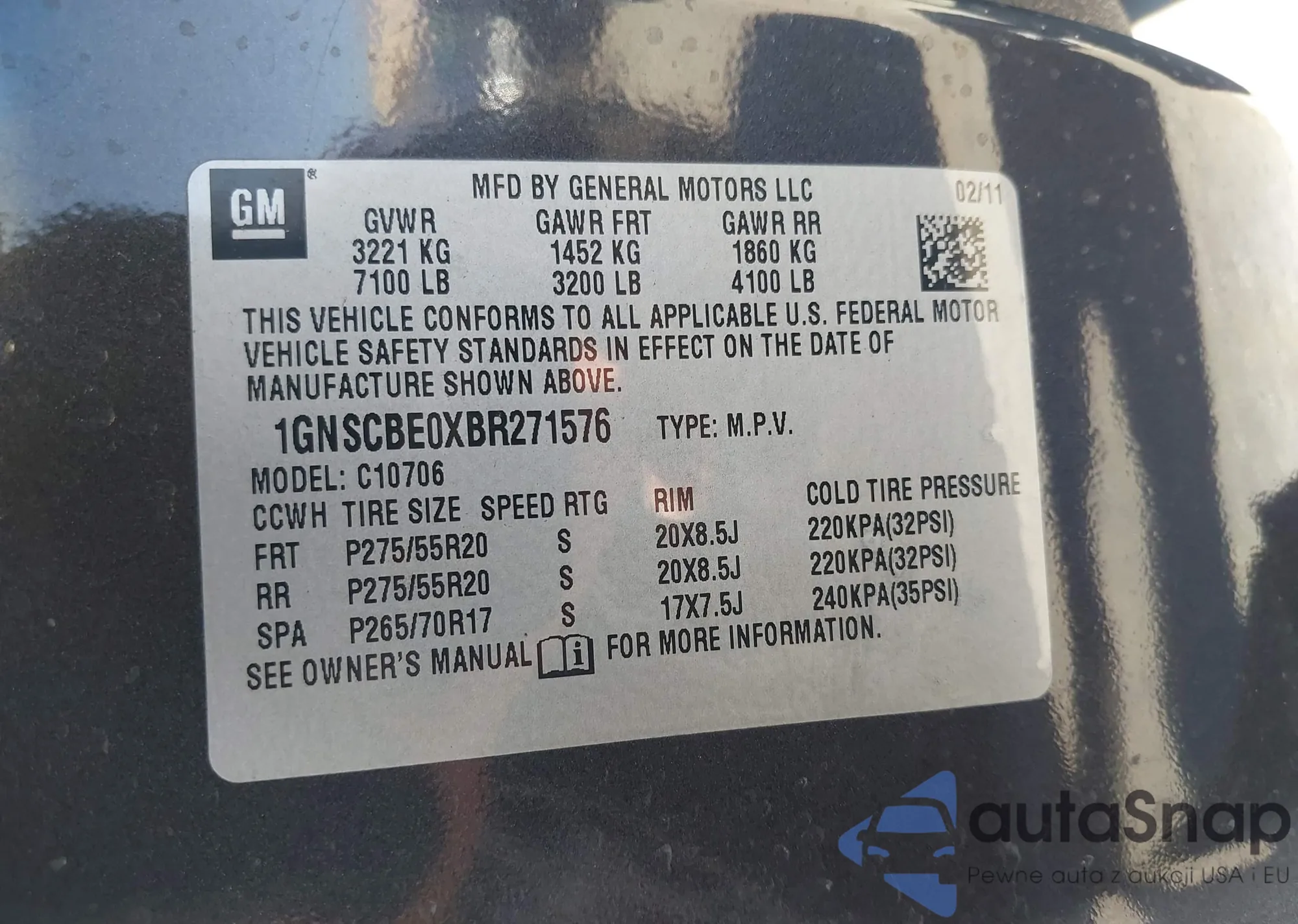 LOT: 41842567 VIN: 1GNSCBE0XBR271576