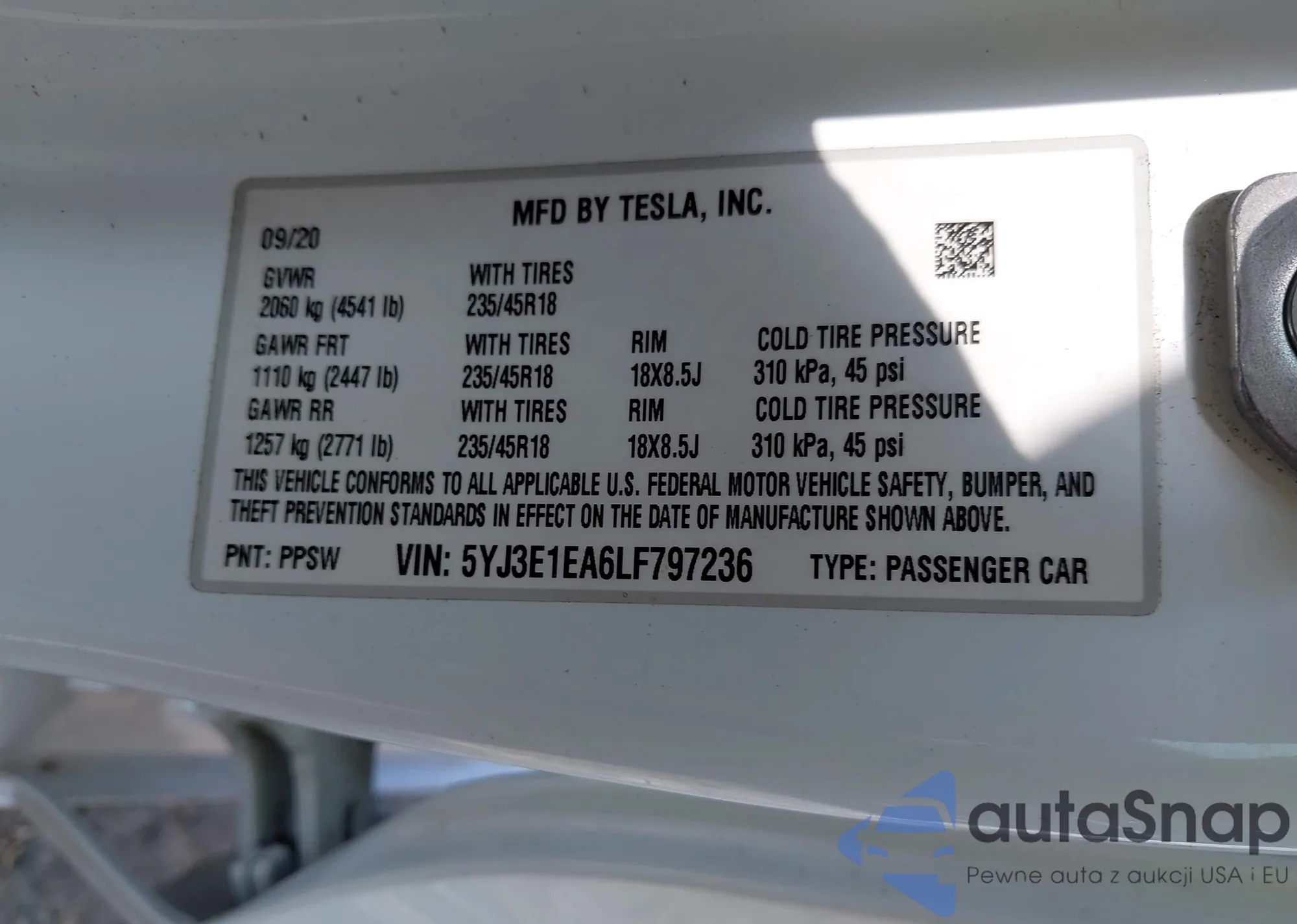 • VIN 5YJ3E1EA6LF797236
