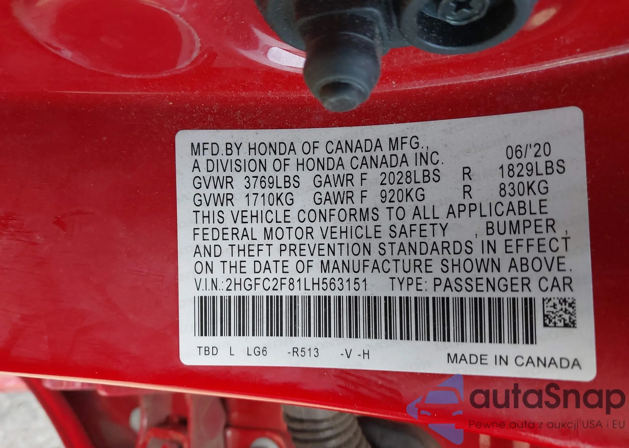 • VIN 2HGFB2F58DH582841
