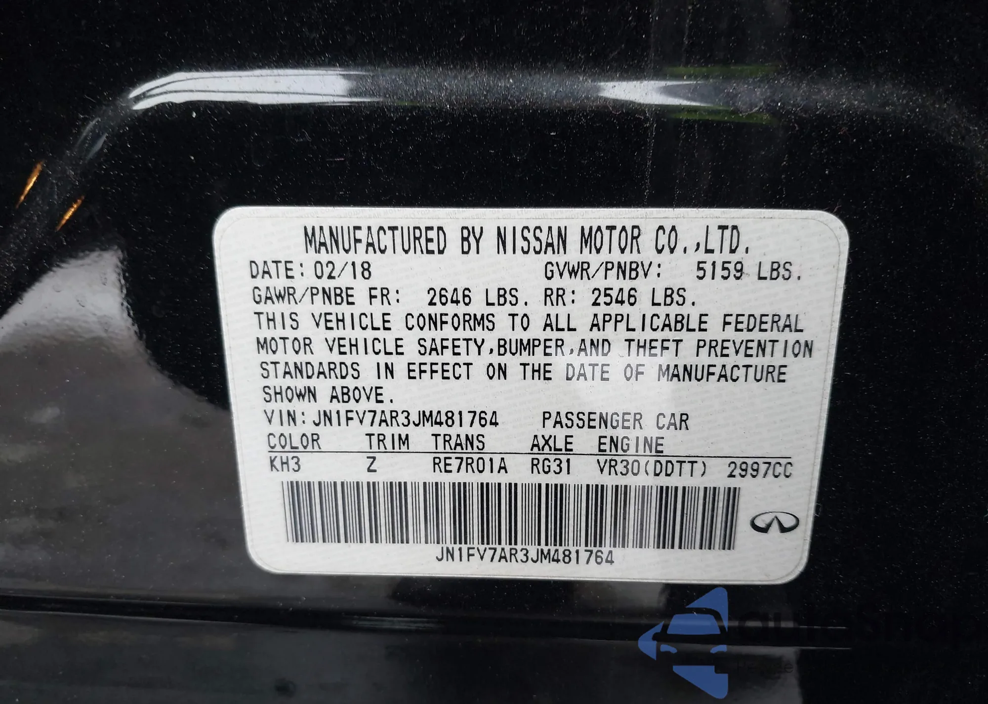 LOT: 46624345 VIN: JN1CV6AP7FM500917