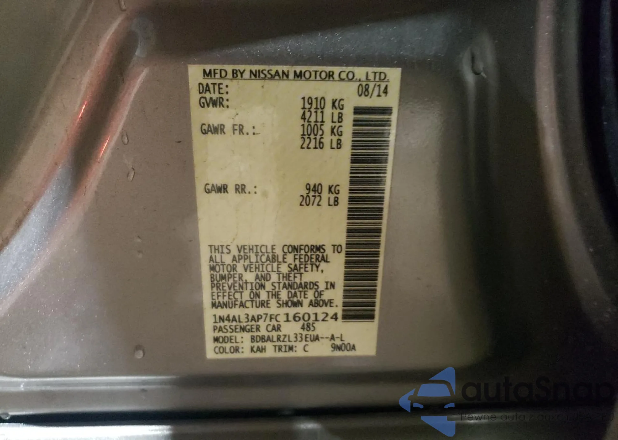 • VIN 1N4AL3AP7FC160124