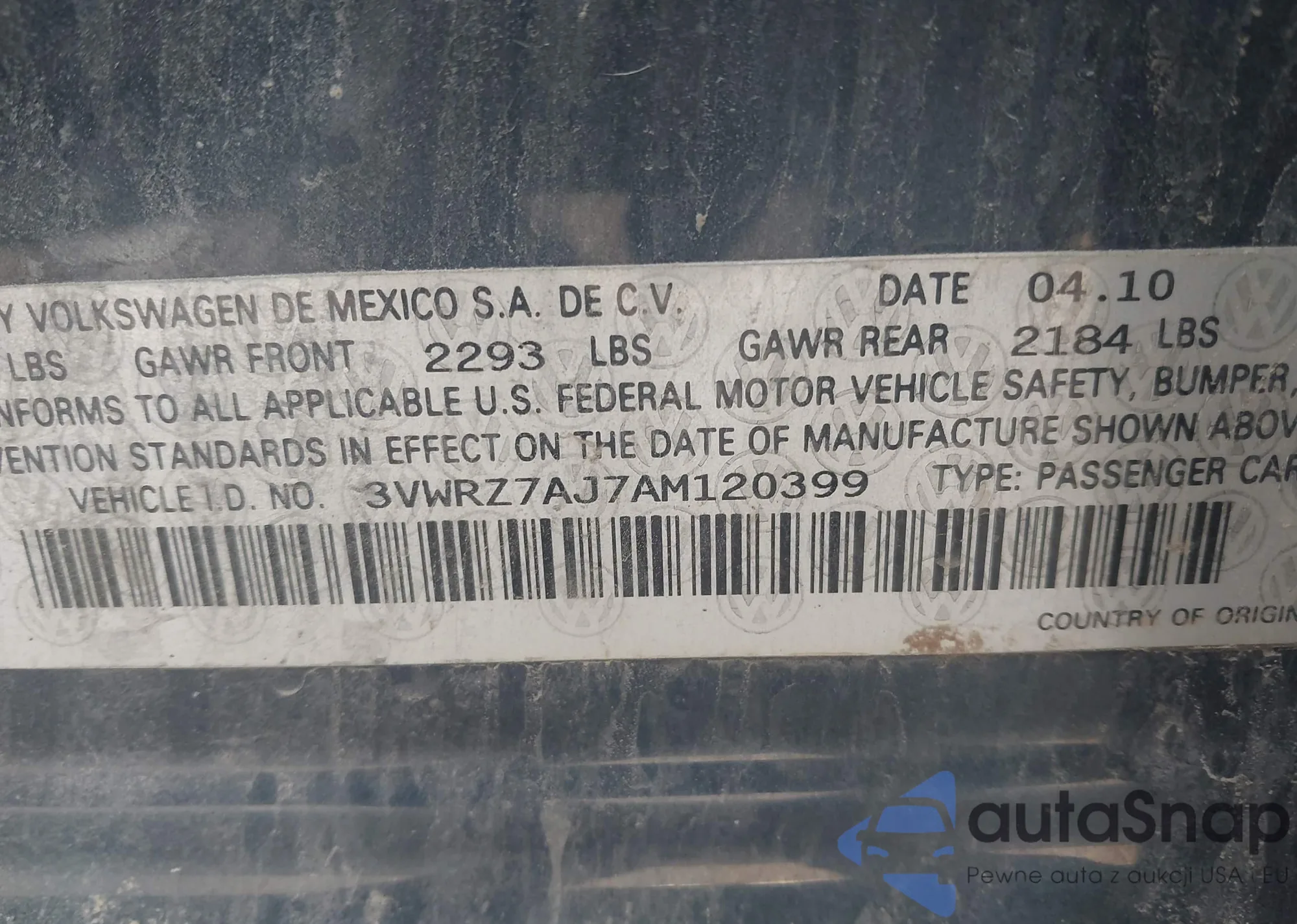 • VIN WMWSU3C5XDT678939