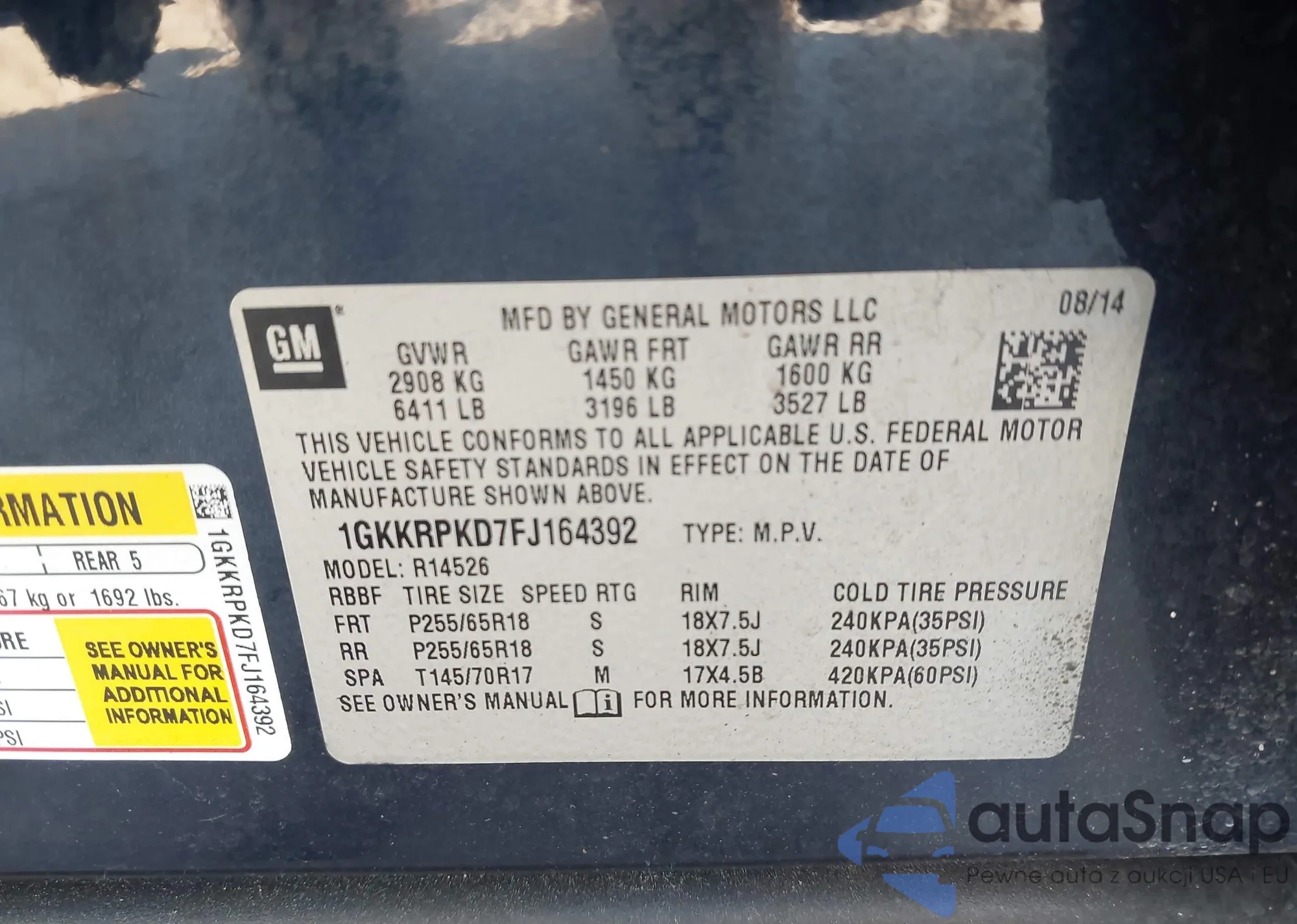 • VIN 1GKKRPKD7FJ164392