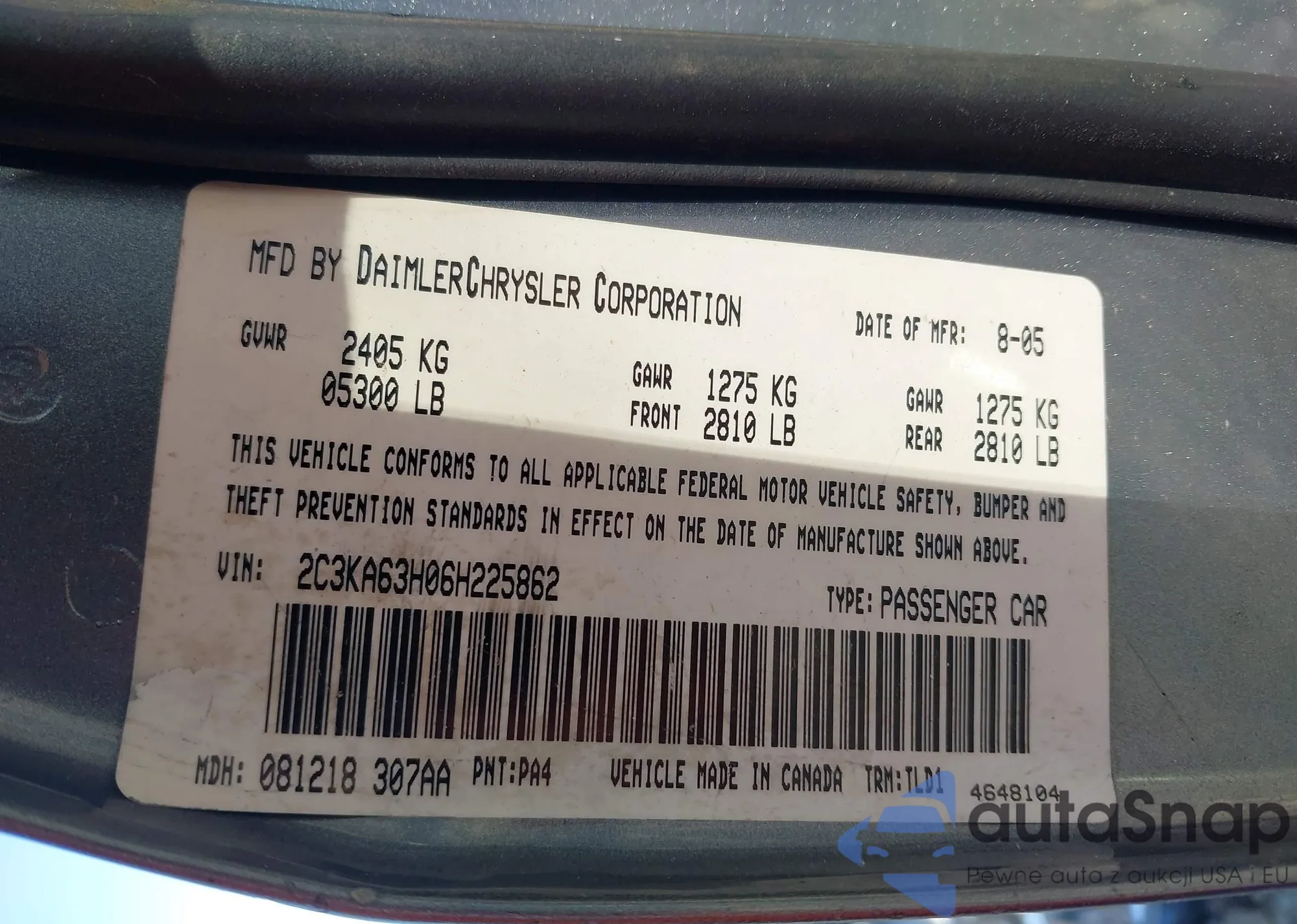 • VIN 2C3KA63H06H225862