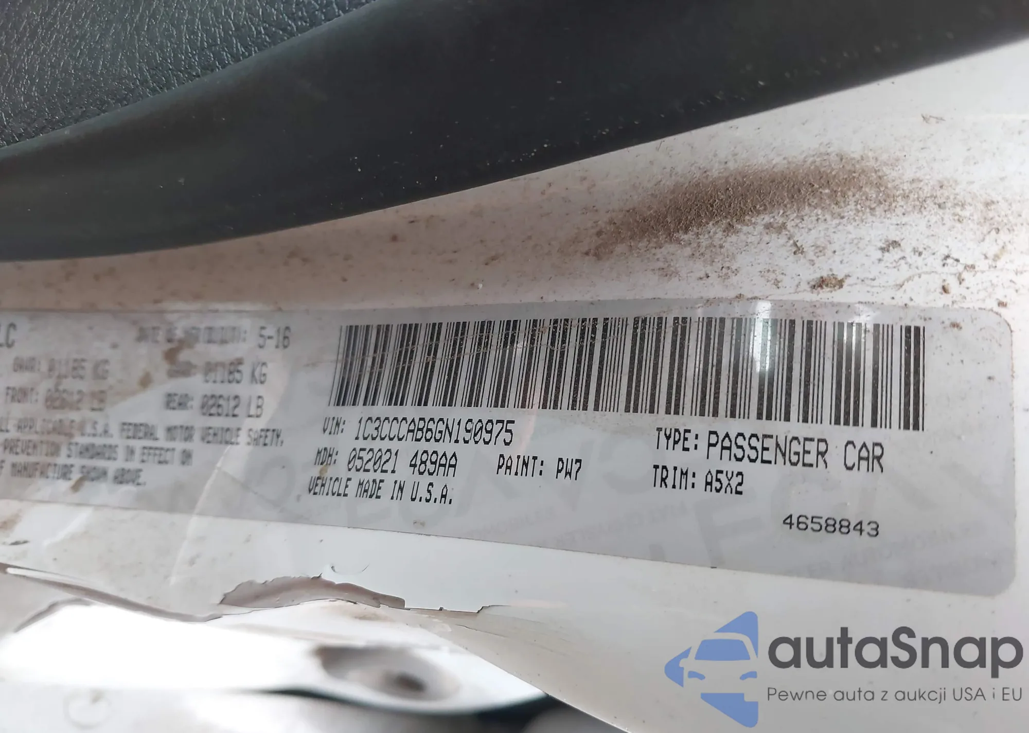 LOT: 40973680 VIN: 1C3CCCAB6GN190975