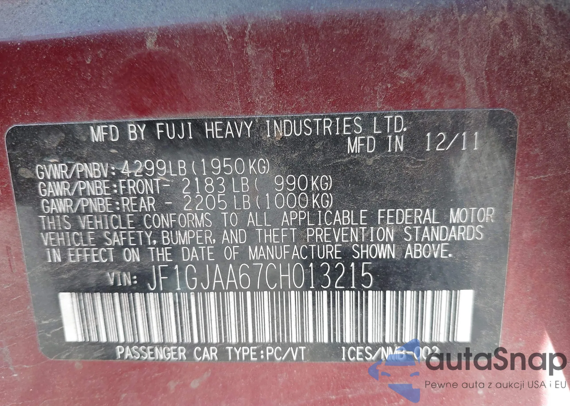 • VIN JF1GJAA67CH013215