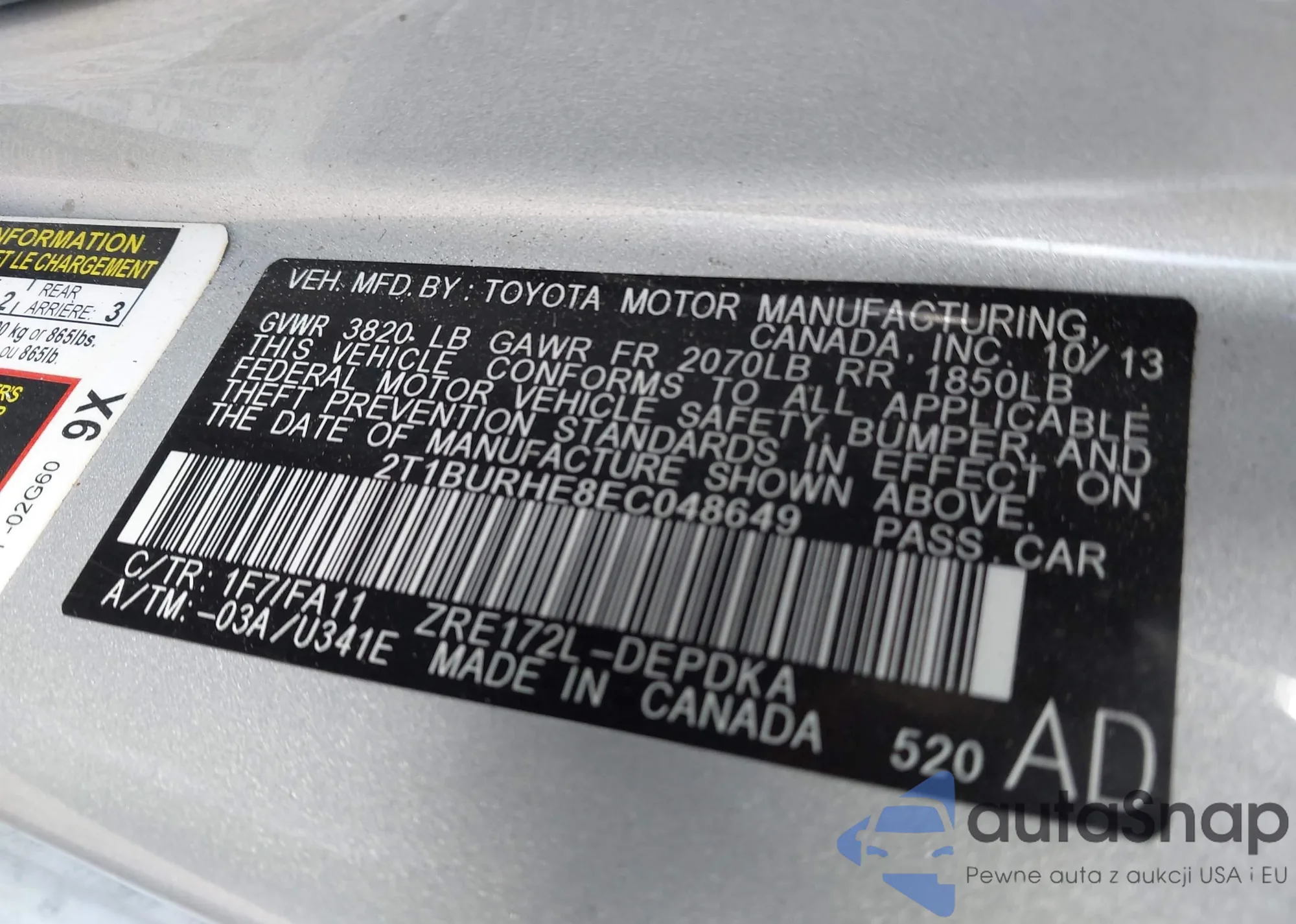 • VIN 2T1BURHE8EC048649
