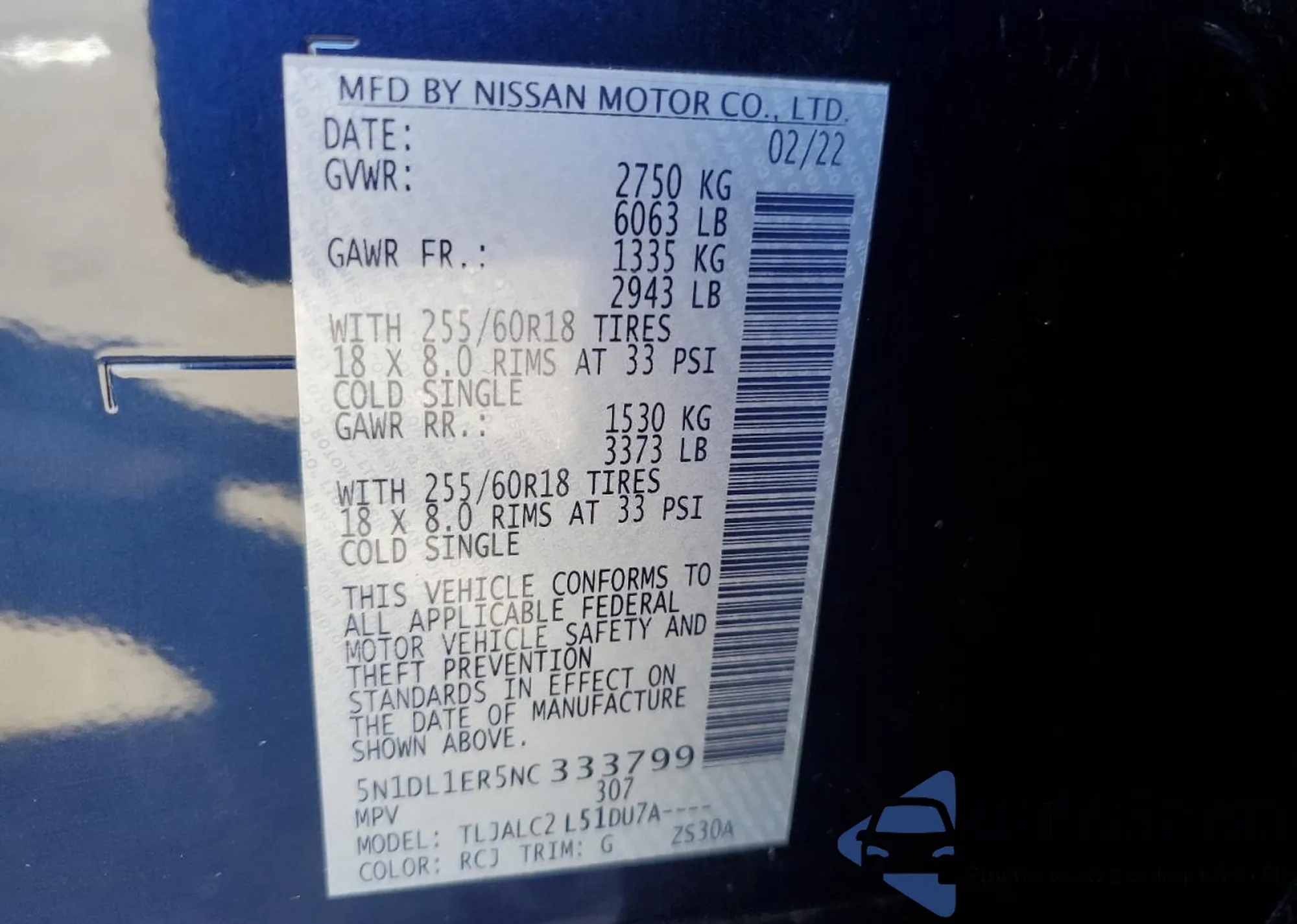 • VIN 5N1DL1ER5NC333799