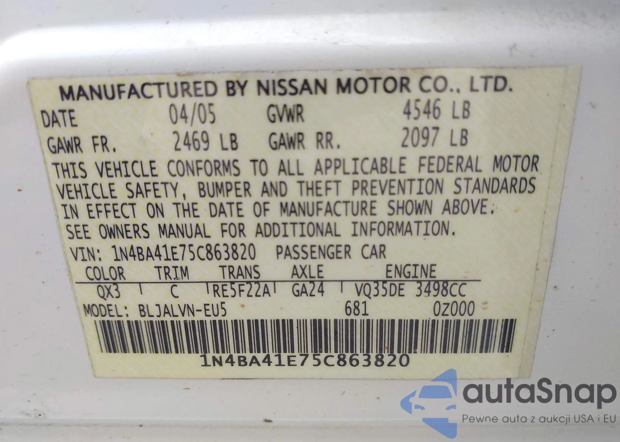 • VIN JN8AS5MV7AW602947