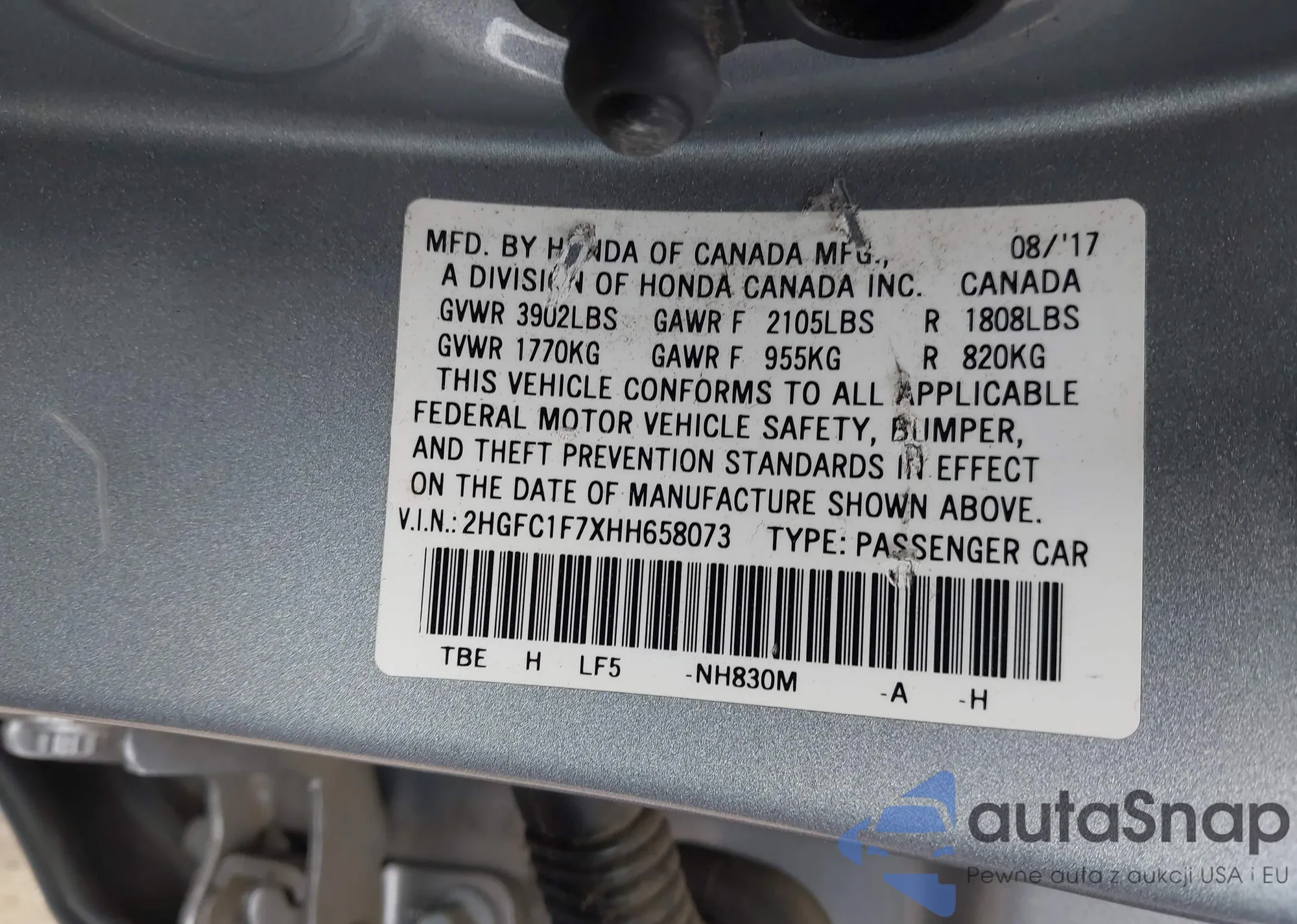 • VIN 2HGFC1F7XHH658073