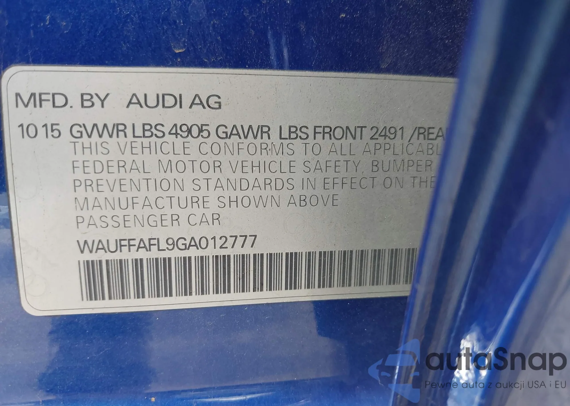 • VIN WAUFFAFL9GA012777